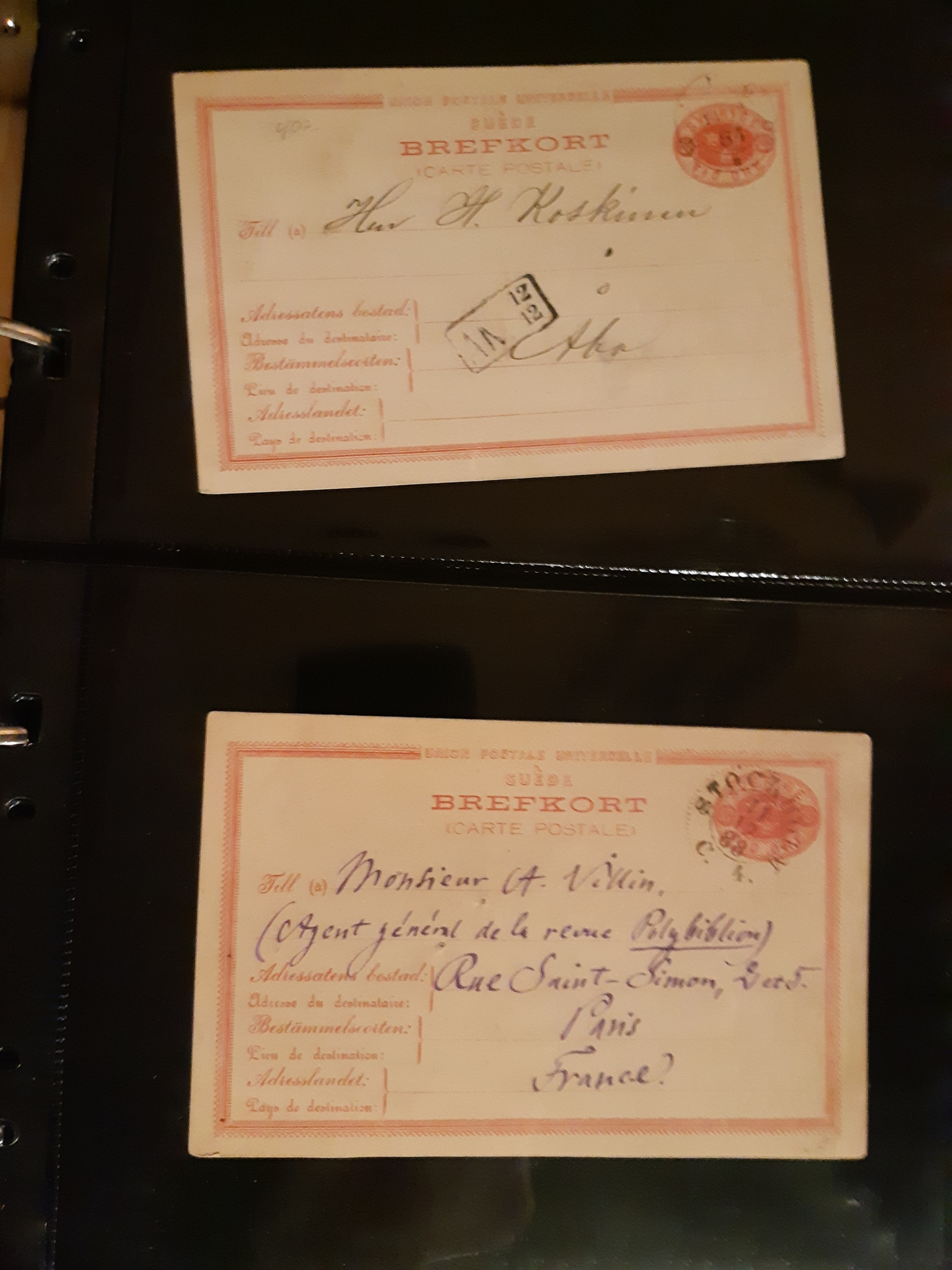 Sweden. Postal stationery, collection 1872–1952 in album. Much unused plus some used e.g. sent to foreign destinations, a few additional franked, one postage due, etc. Mostly good quality. (121)