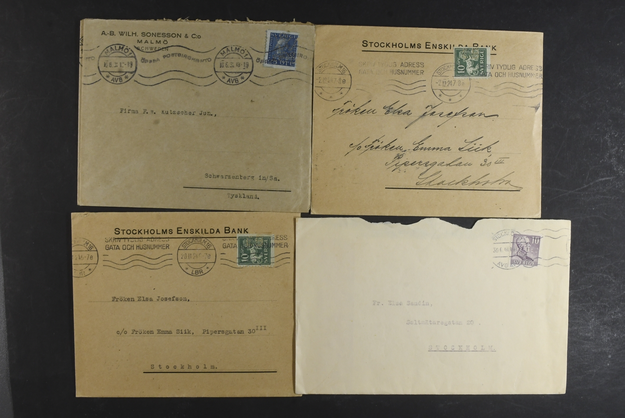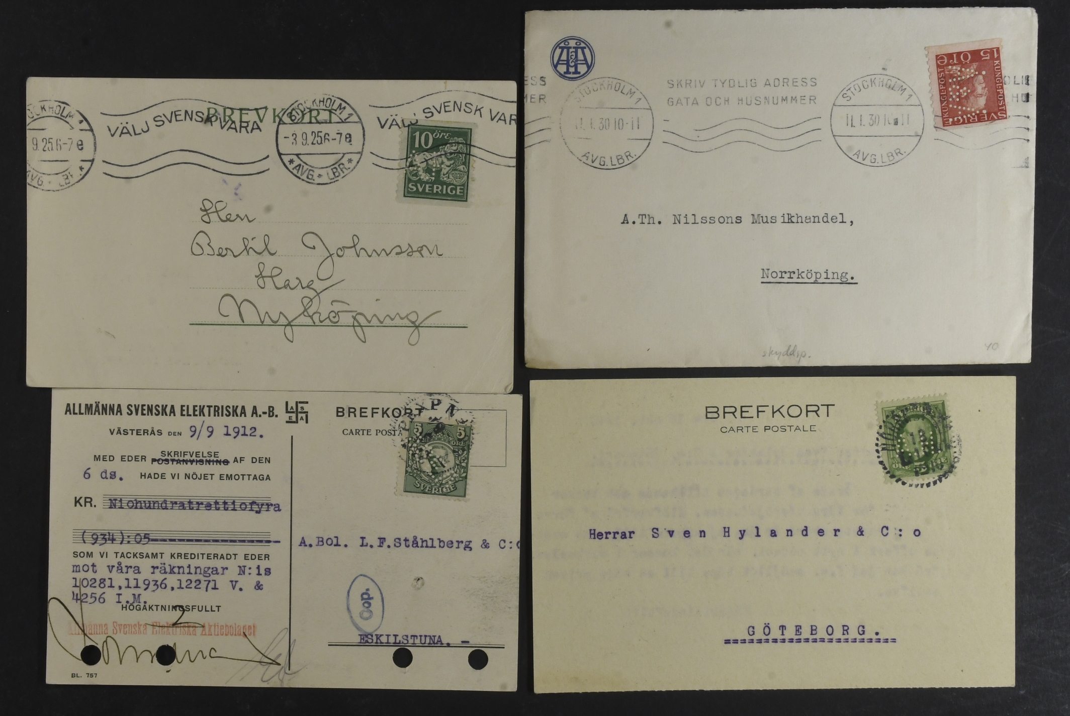 Sweden. Perfins, lot COVERS 1900s–1941. Also two Danish items. (29)