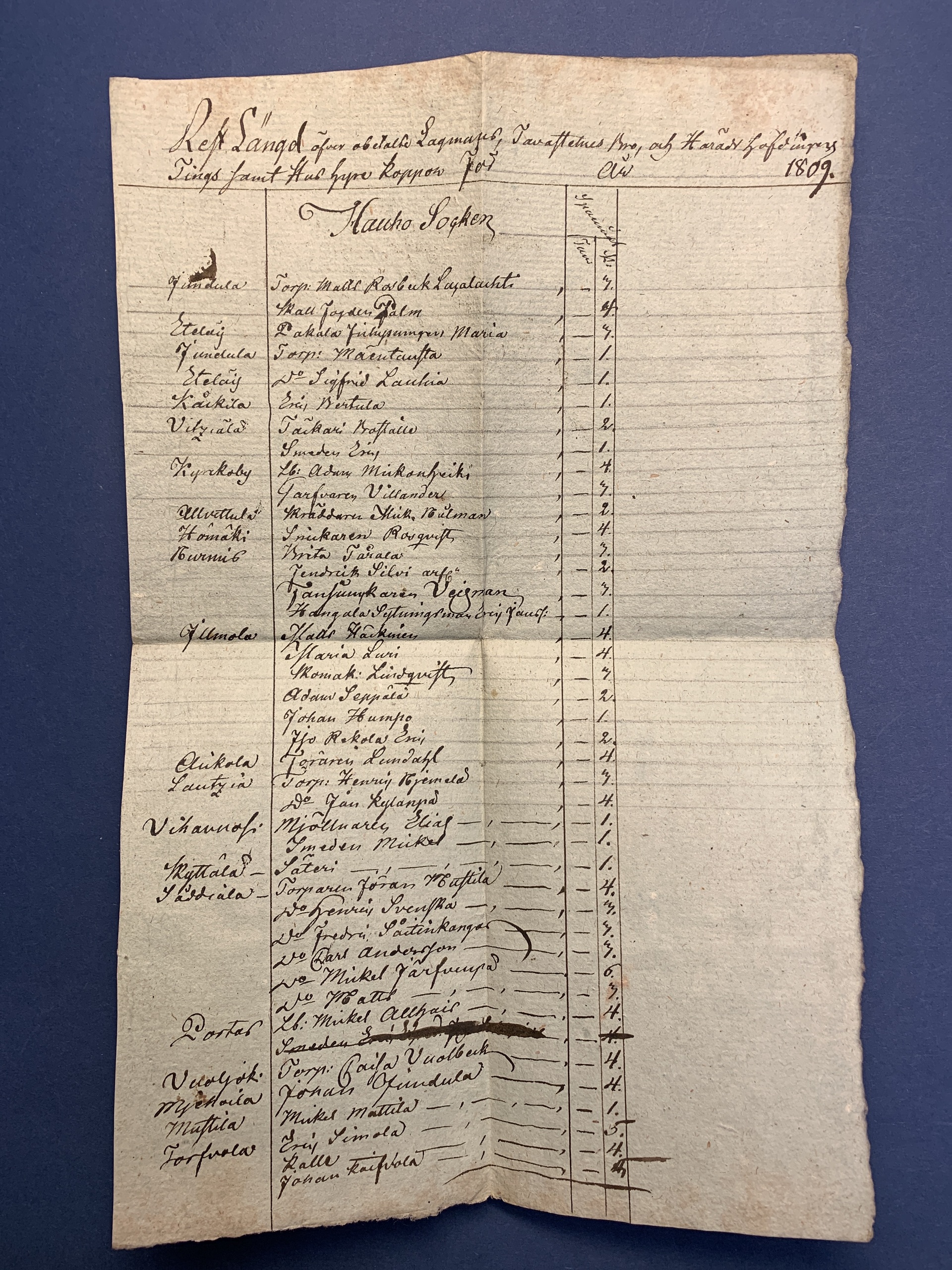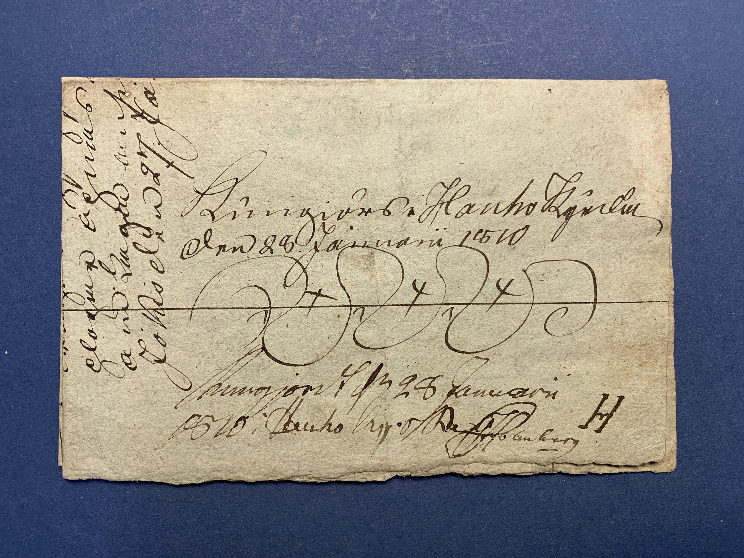 Finland. Cover, Cover with crown coil, dated 28 Januari 1810, the First year of Finnish Independence from Sweden. Contains a list of unpaid grain 'koppor' (tax in kind). Historically interesting document!
