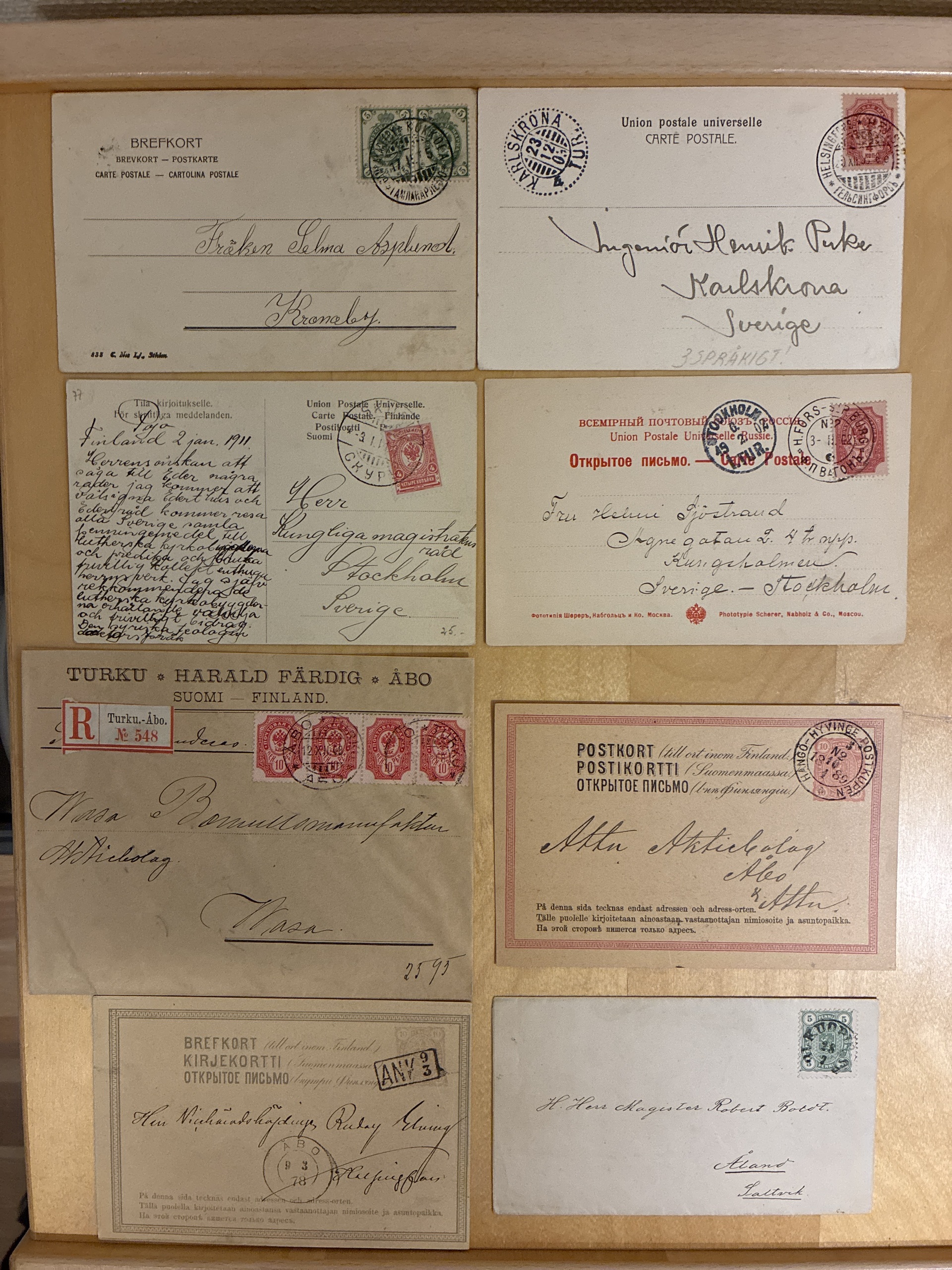 Finland. Accumulation covers 1880–1950. 50 covers/postal stationery, some beautiful. The entire lot is presented at www.philea.se. Mostly good quality.