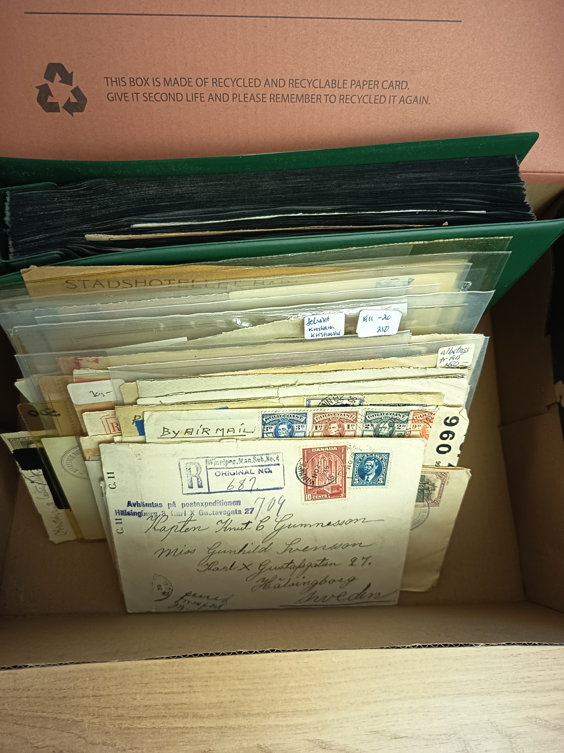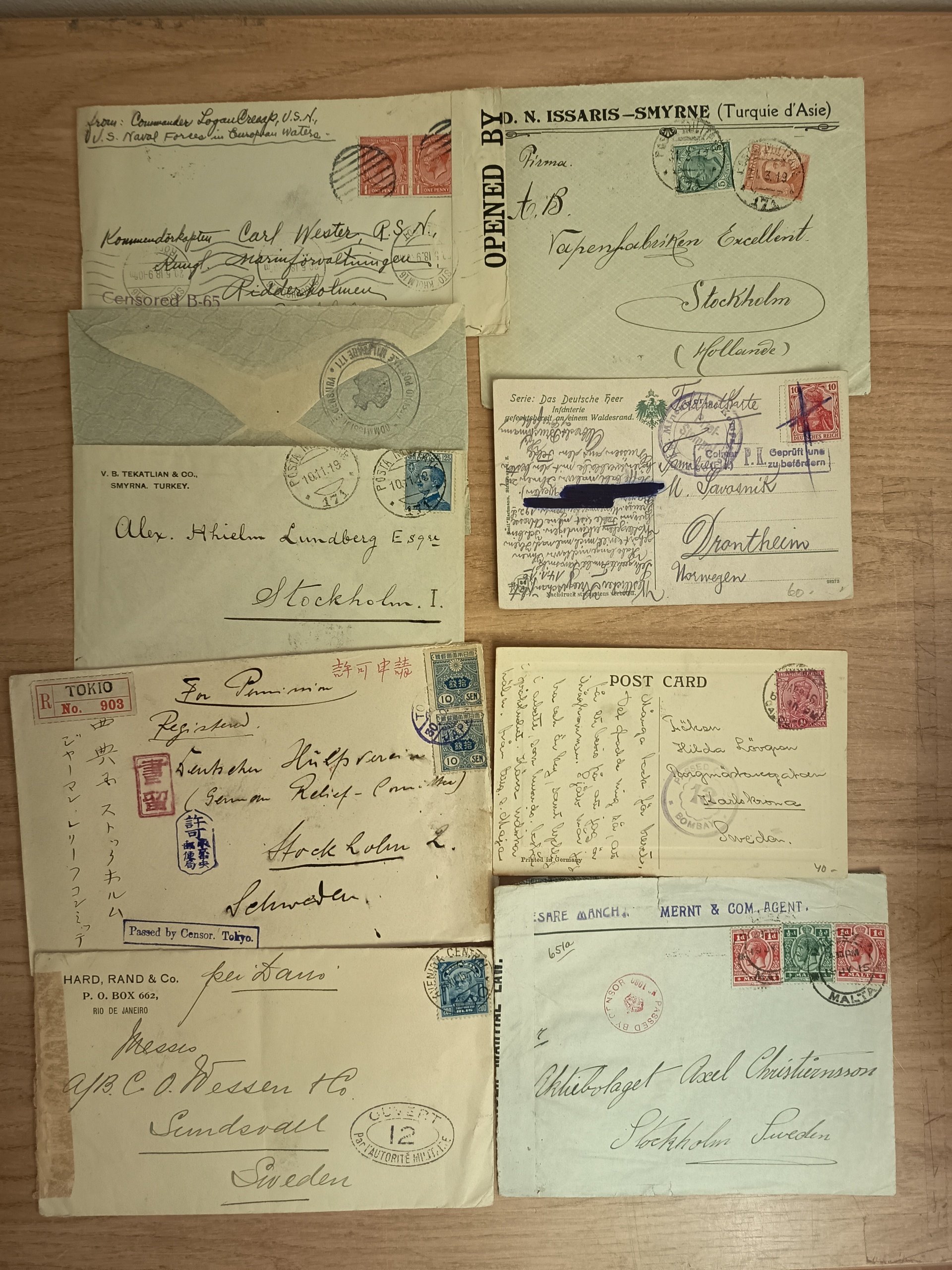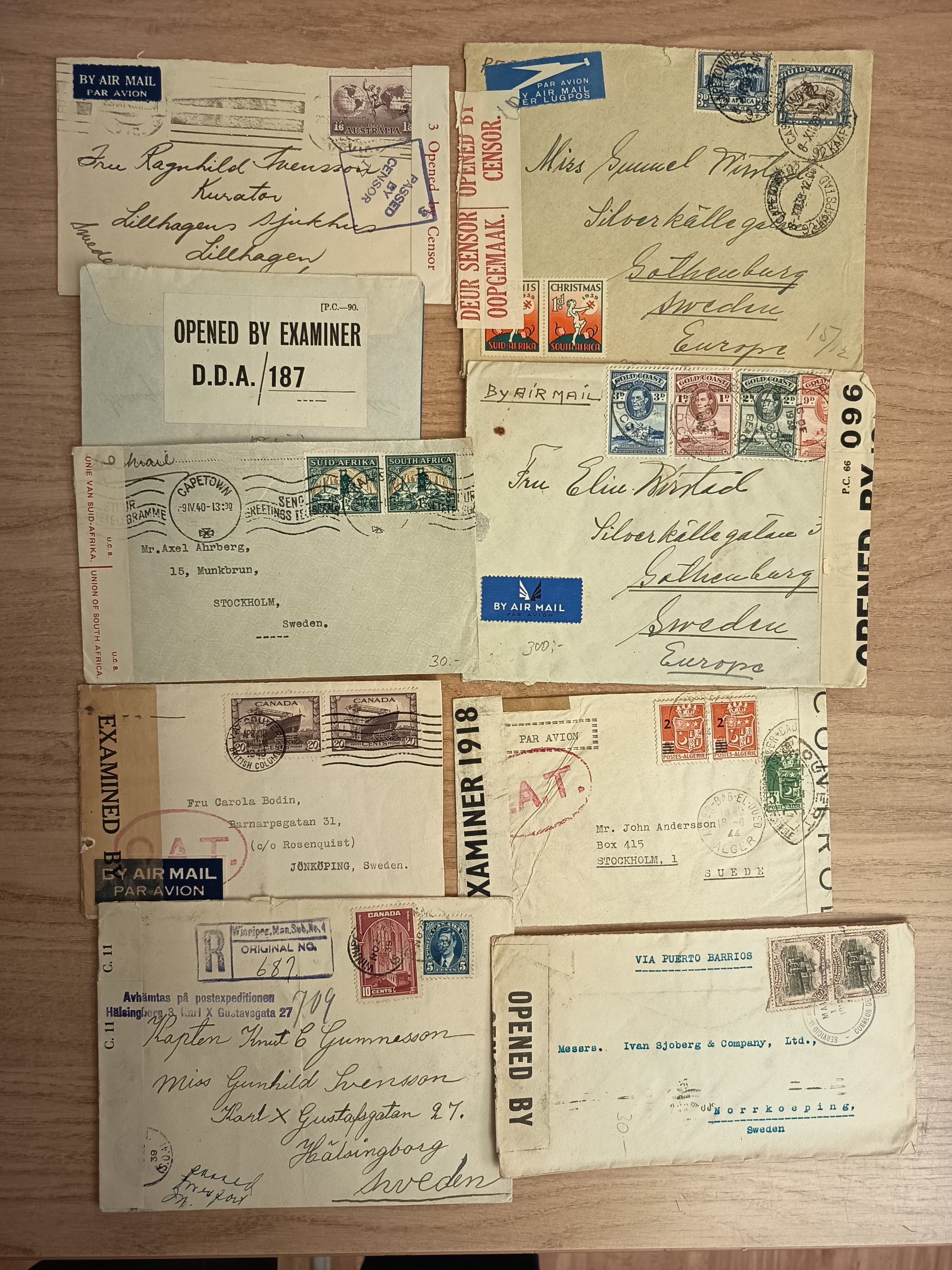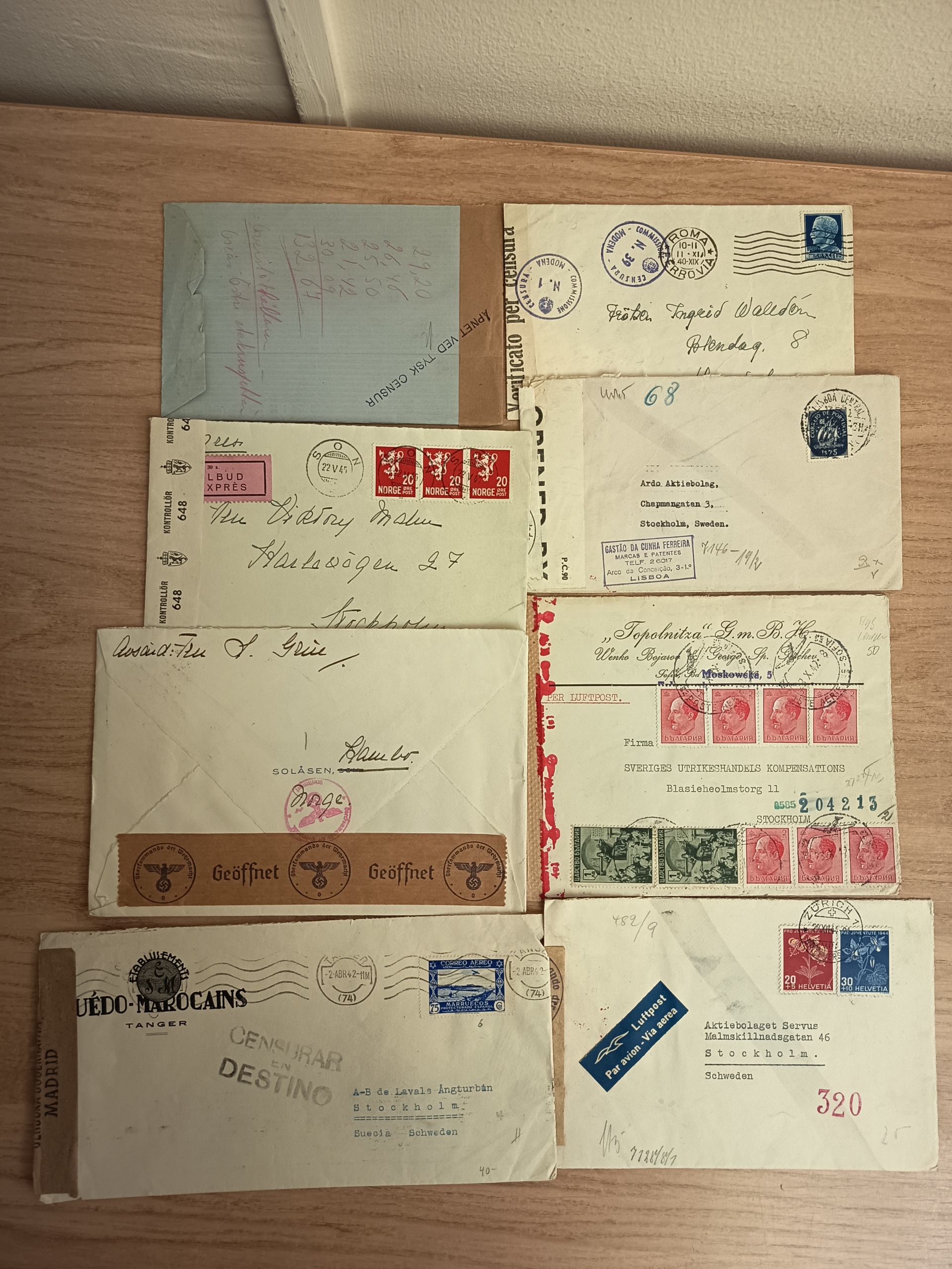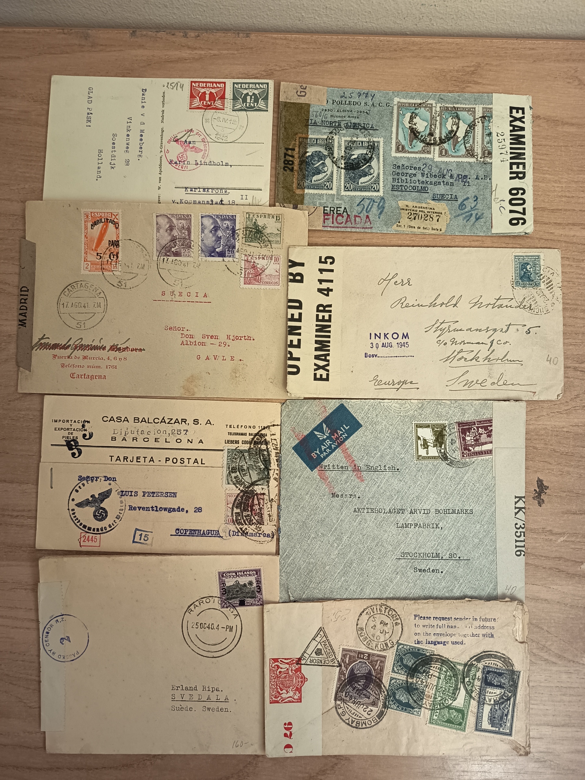 ALL WORLD. Accumulation covers in box. Censored mail mostly WW 2, covers and cards from many countries. Please see a selection of scans at www.philea.se. Mostly good quality. (approx. 100)