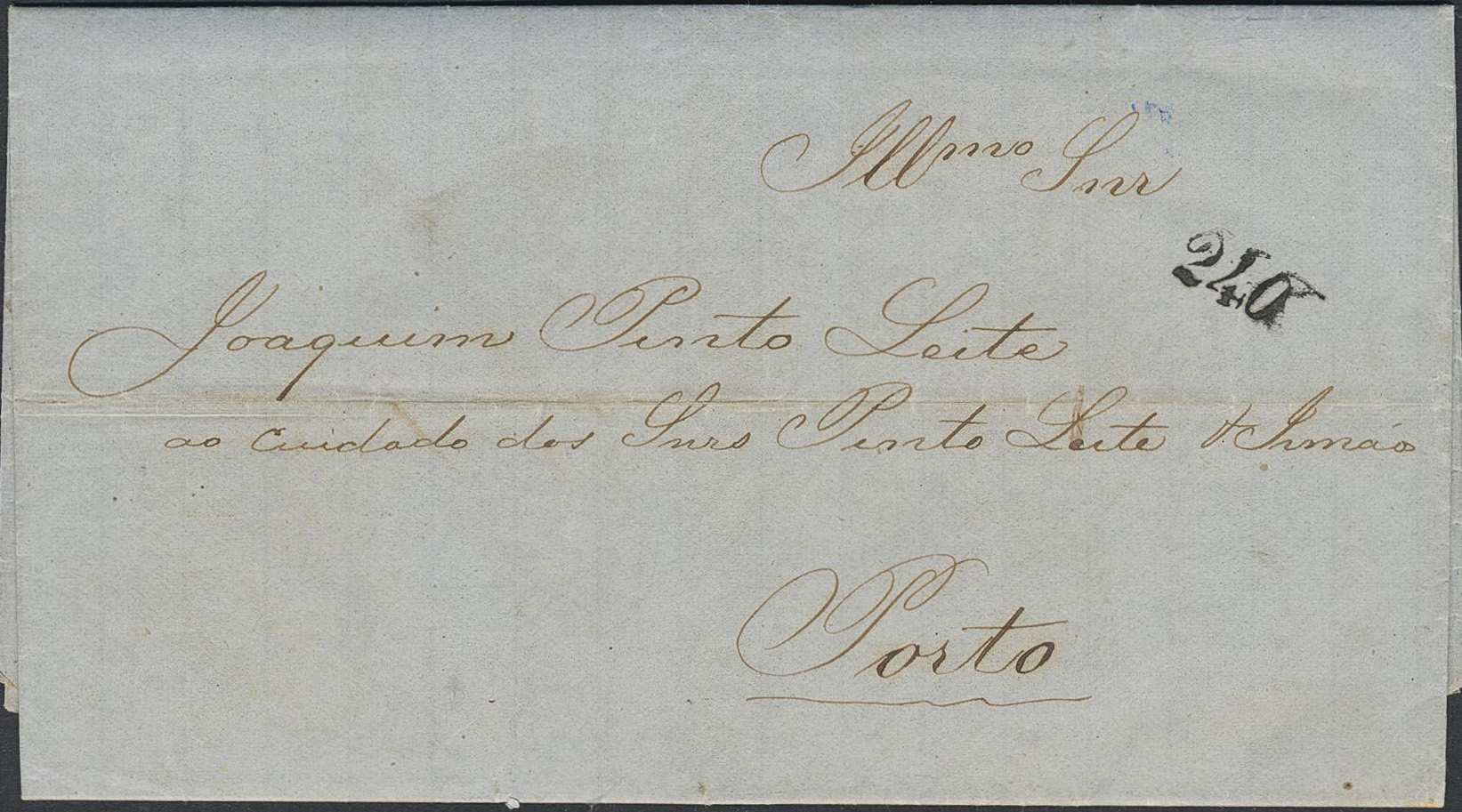 Brazil. Prephilately. Letter sent from RIO-DE-JANEIRO 14.5.1858 to Portugal. With arrival pmk PORTO 10.6.1858 and mark 240.