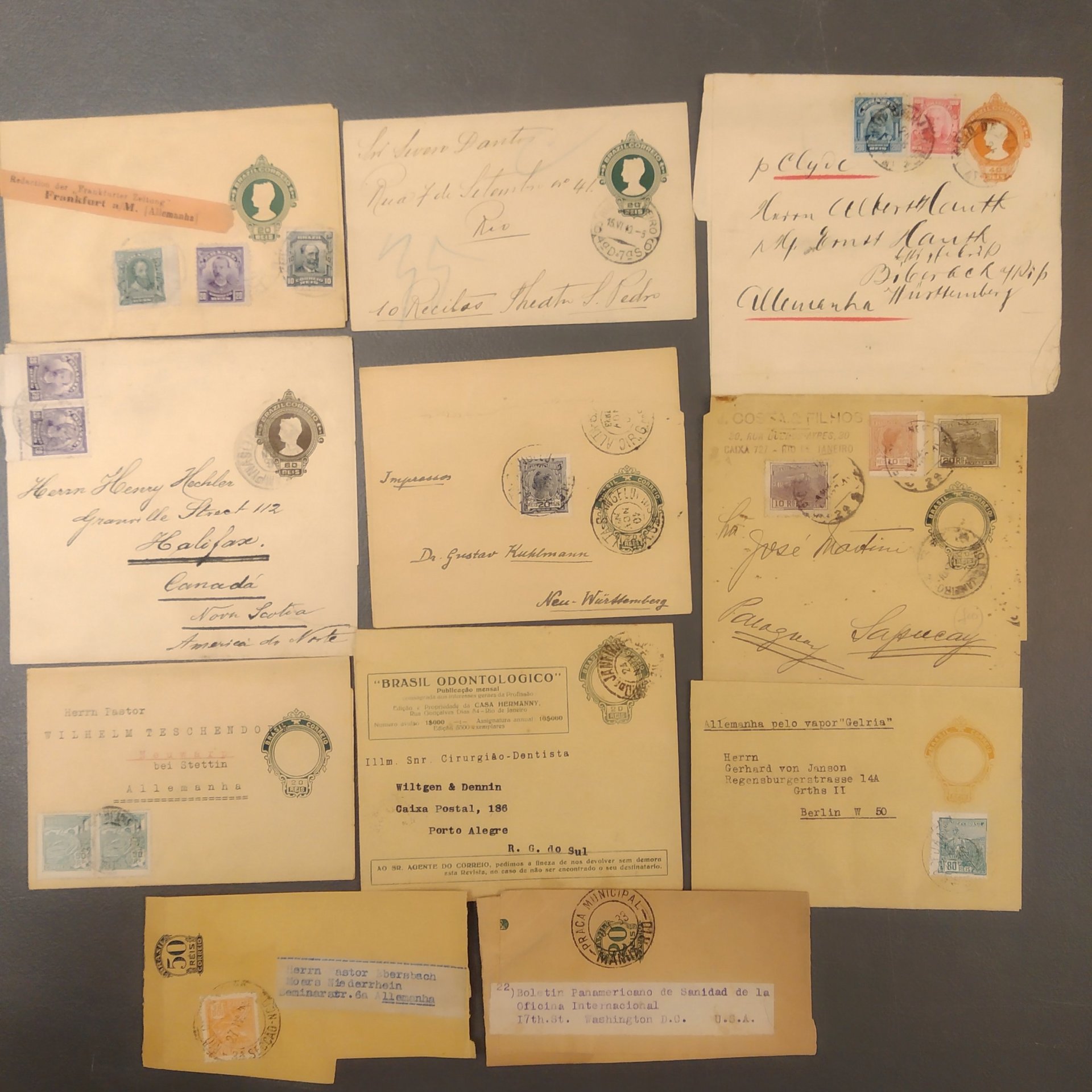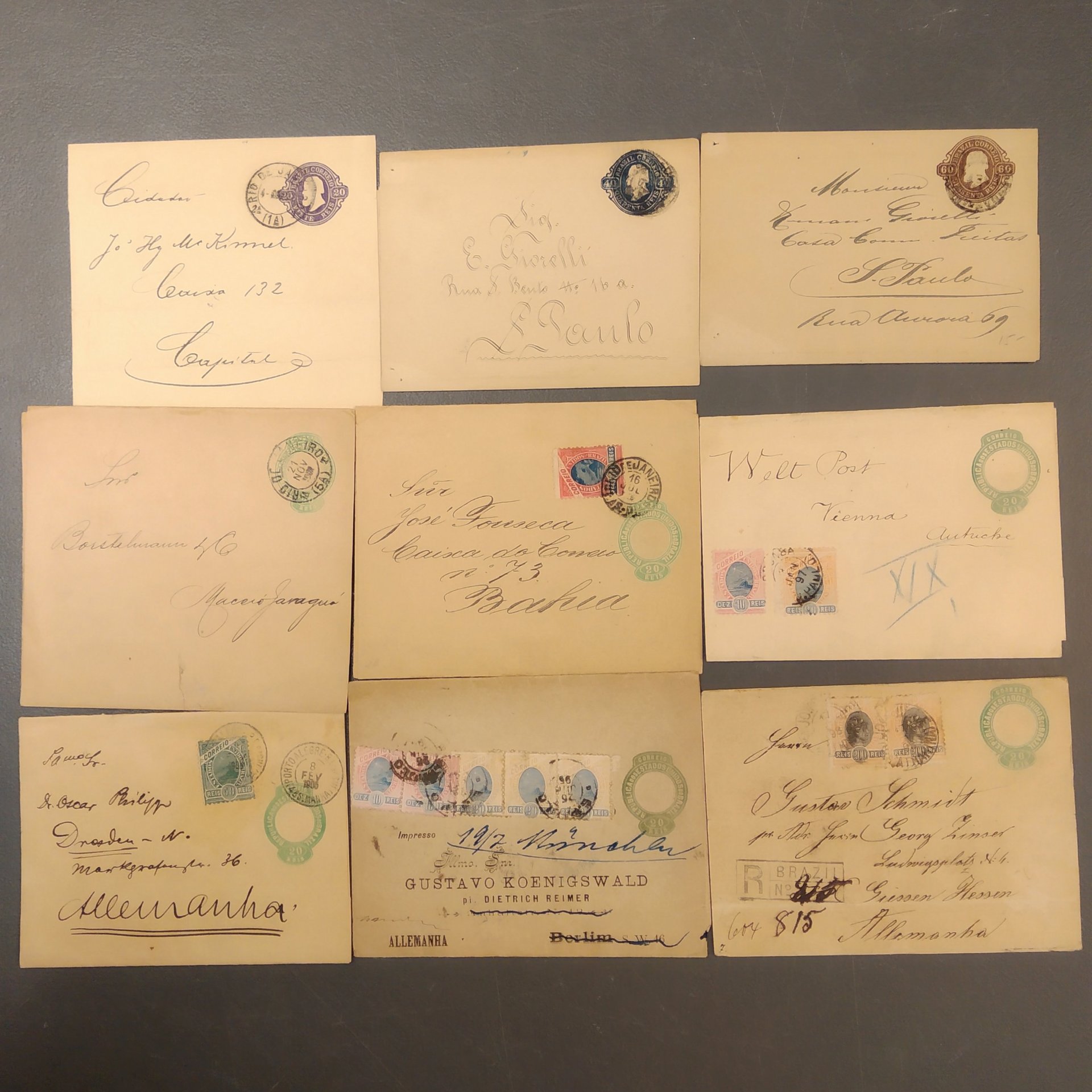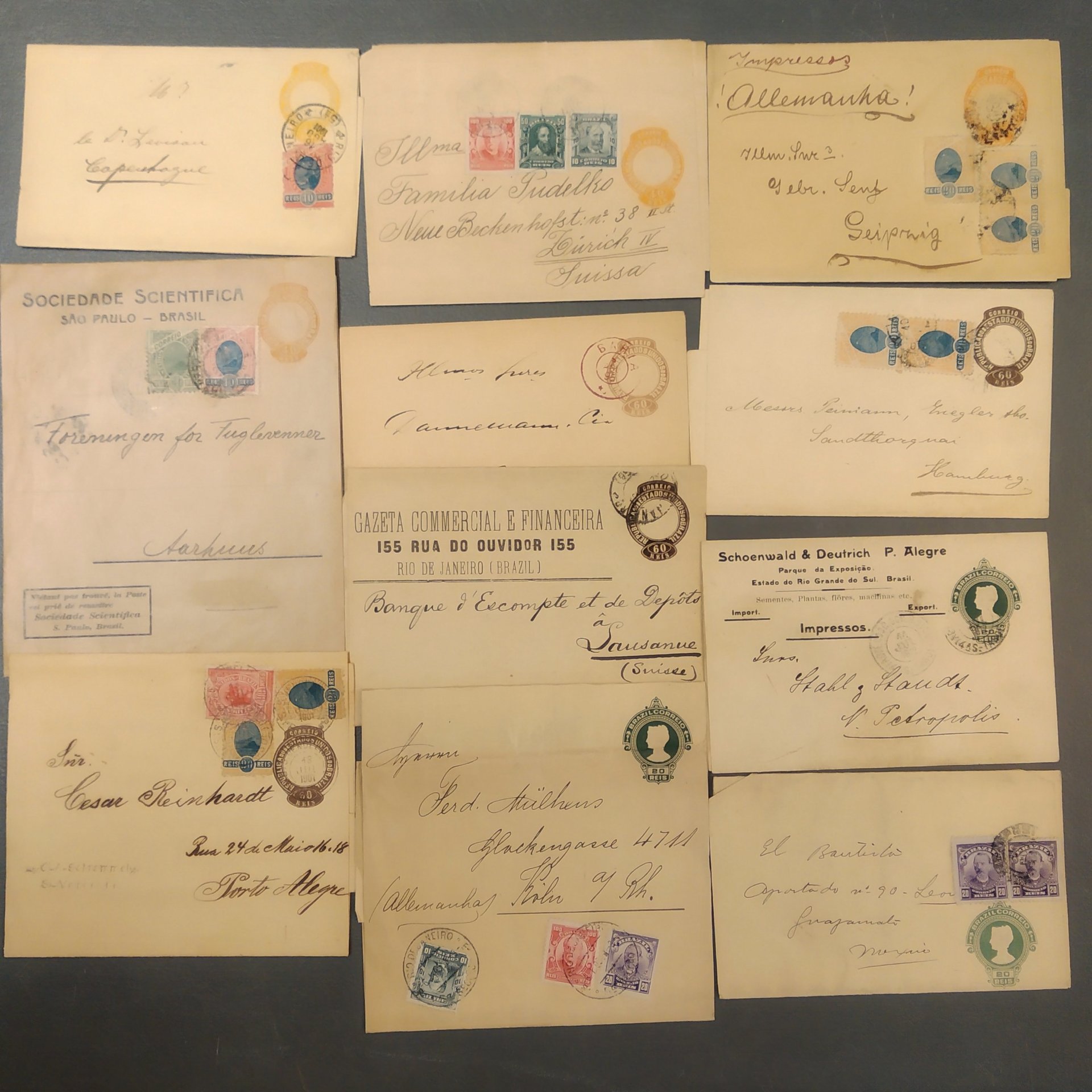 Brazil. Postal stationery. Collection wrappers ex 4–18, variation of types, additional frankings and destinations, incl some with private prints. 37 different in glassine envelopes classified after special catalogue by Kosniowski. Please see a selection of scans at www.philea.se. Good quality.
