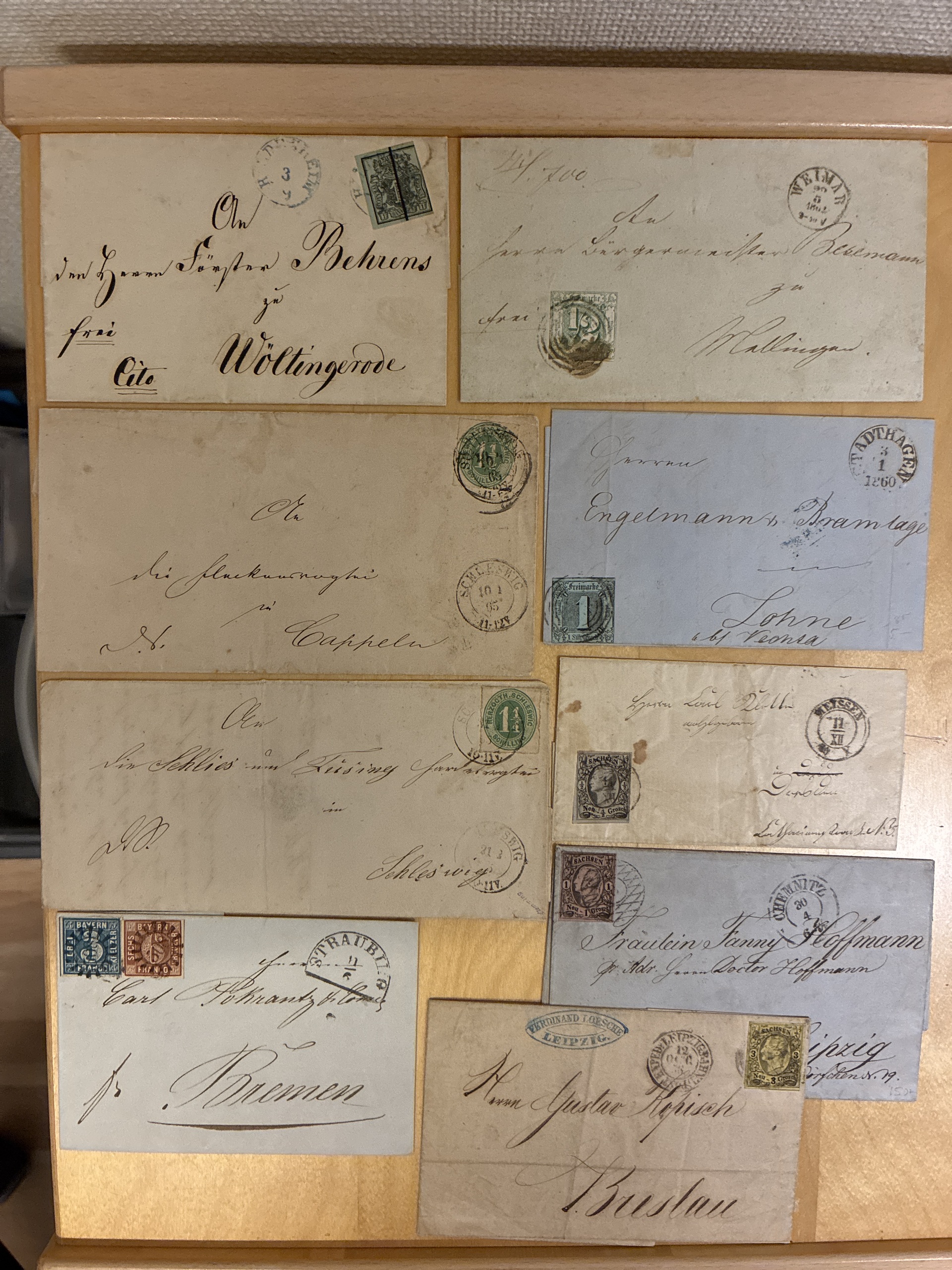 Germany, states. Lot covers ca. 1850–1860 on leaves. 27 covers from different states, nice lot. The entire lot is presented at www.philea.se.