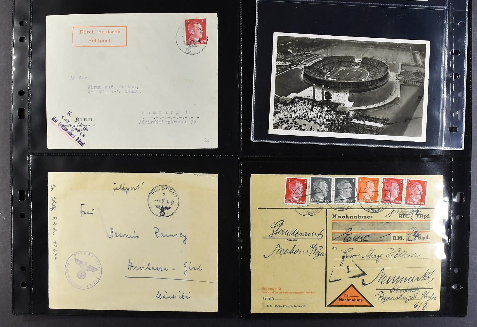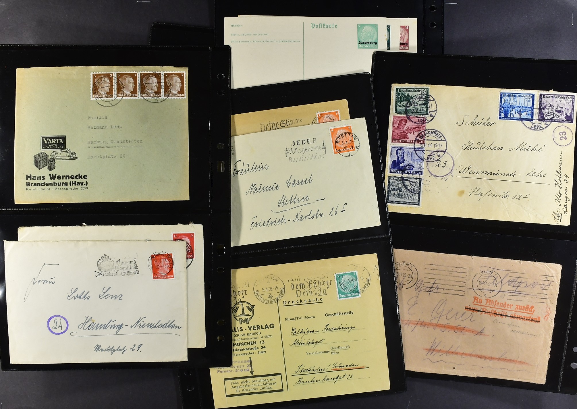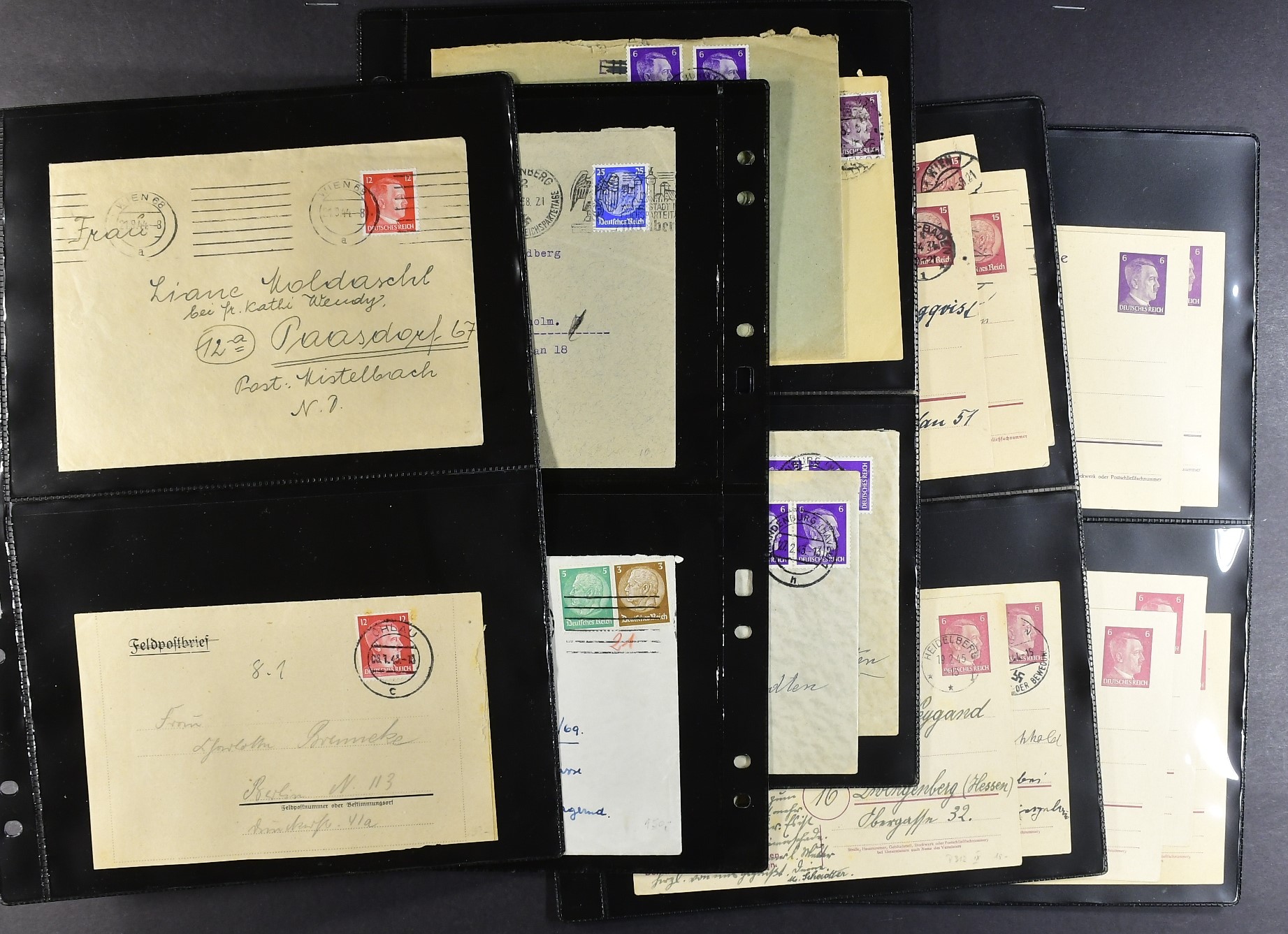 Germany, Reich. Lot covers 1925–1944. E.g. 54 covers and cards, WW2 period in vast majority. Also twelve 'Sammlerbilder' + photos depicted Adolf Hitler. Almost the entire lot is presented at www.philea.se. (70)