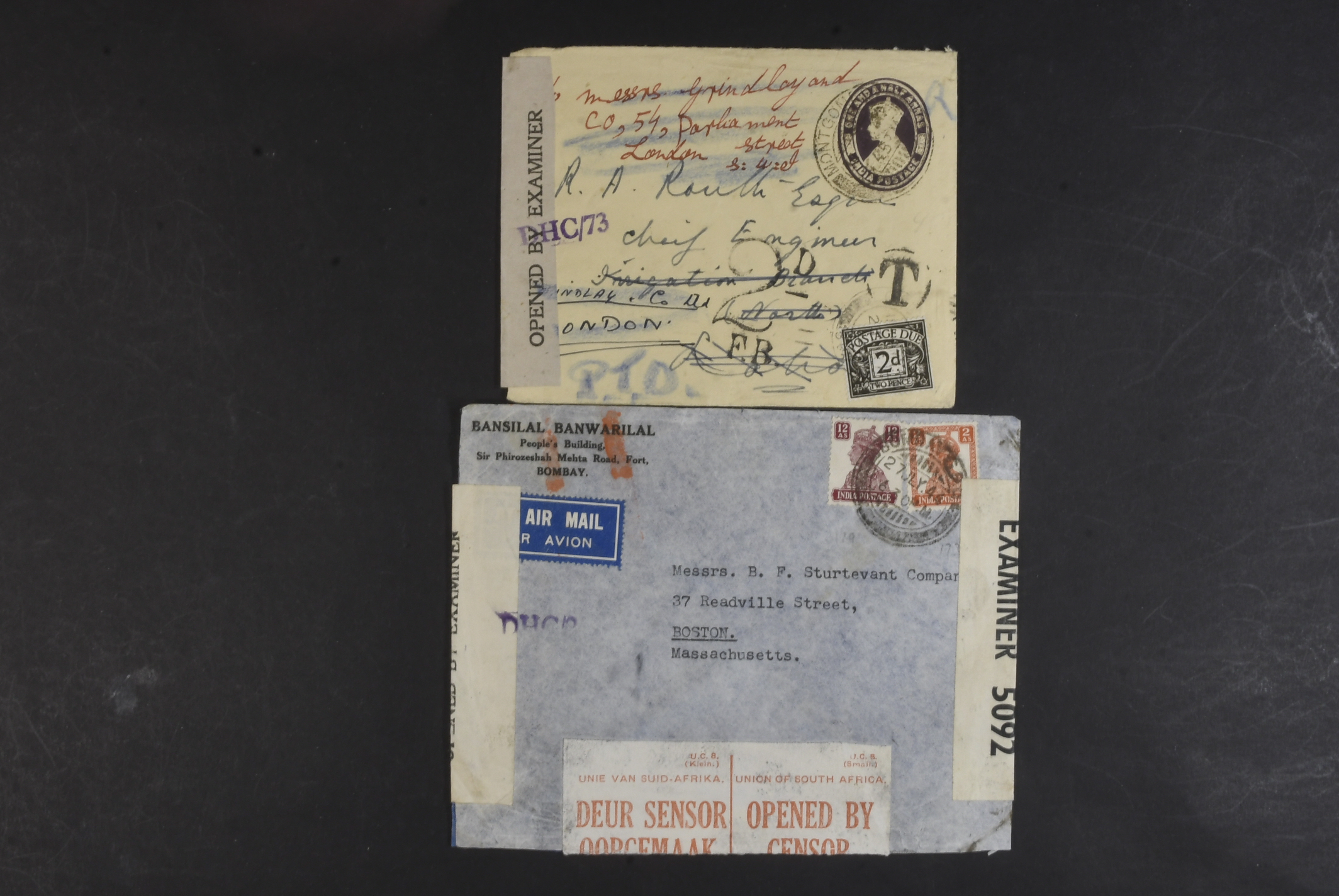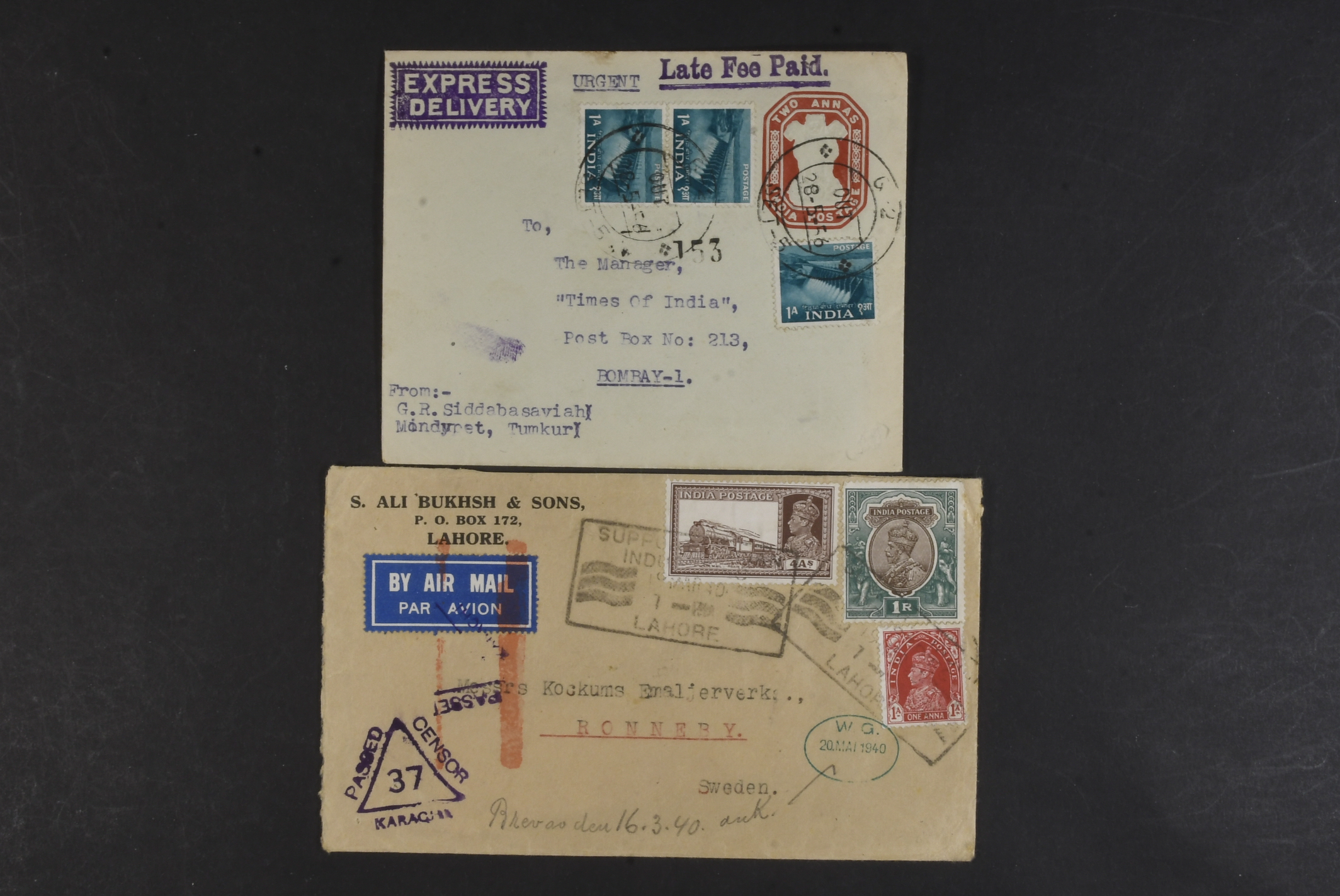 India. Covers. Six interesting covers /cards 1869–1956. The entire lot is presented at www.philea.se.