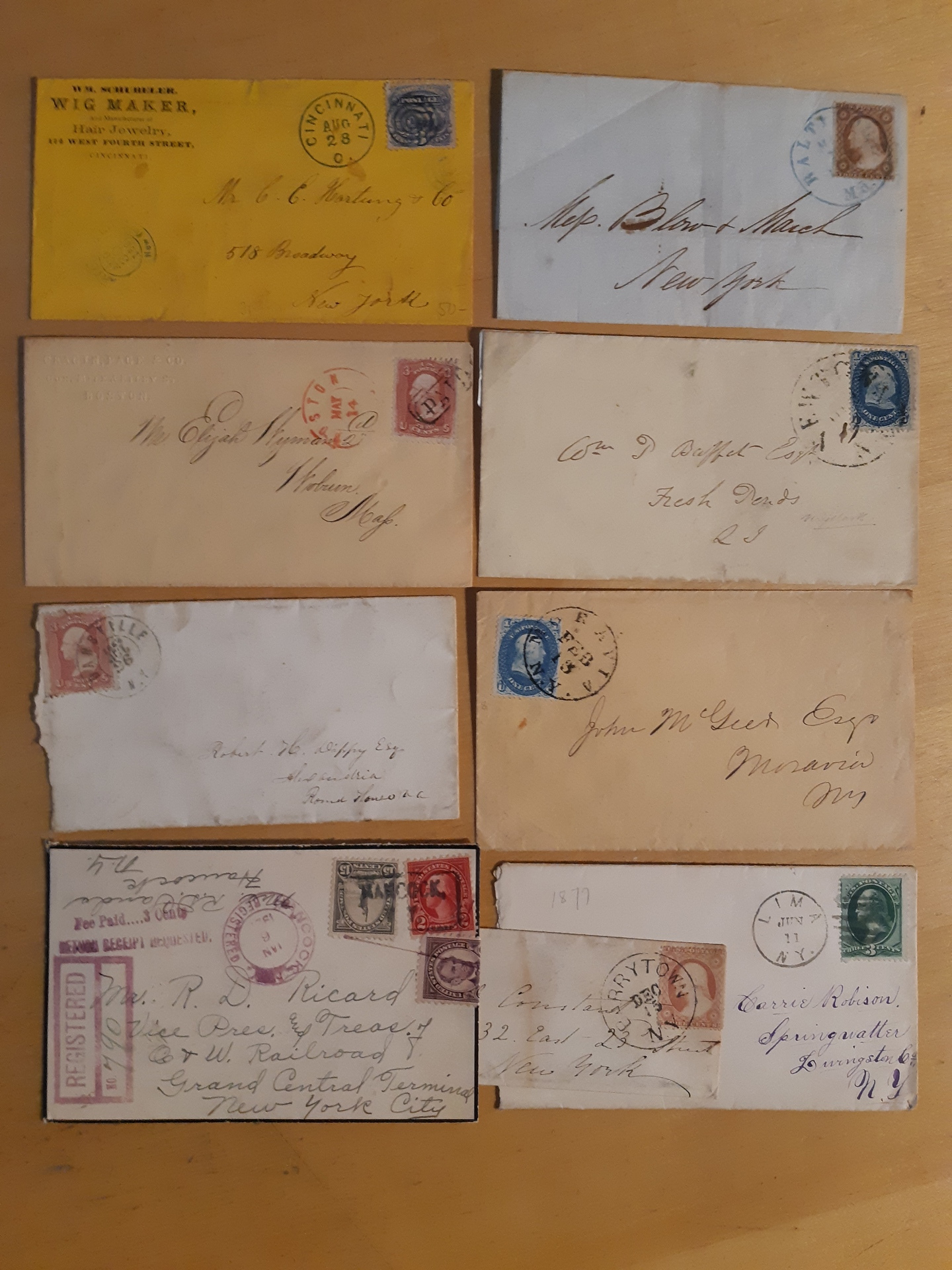 U.S.A. Lot covers 1850s–1927. Nine domestic covers. The entire lot is presented at www.philea.se. Somewhat mixed quality. (9)