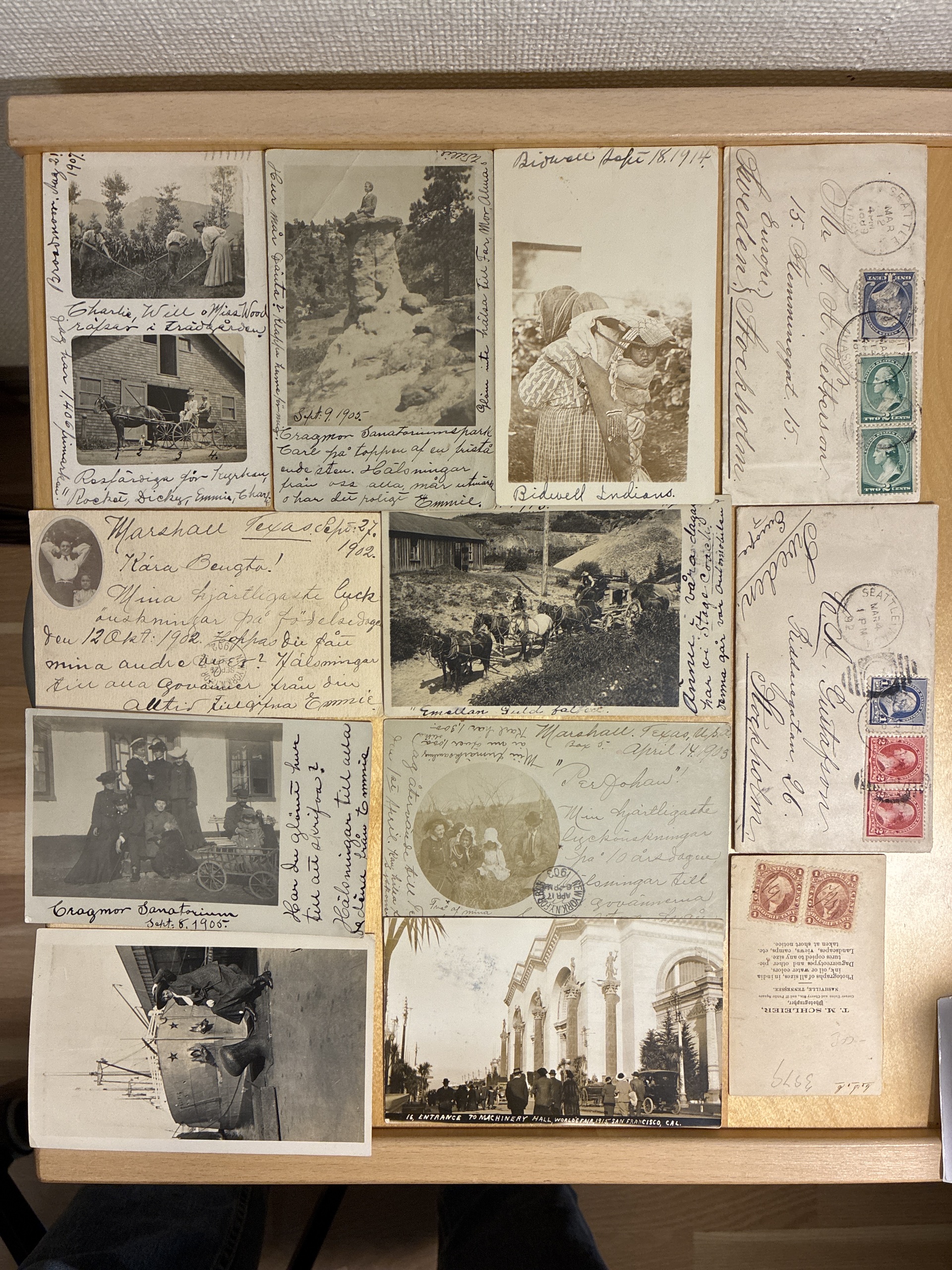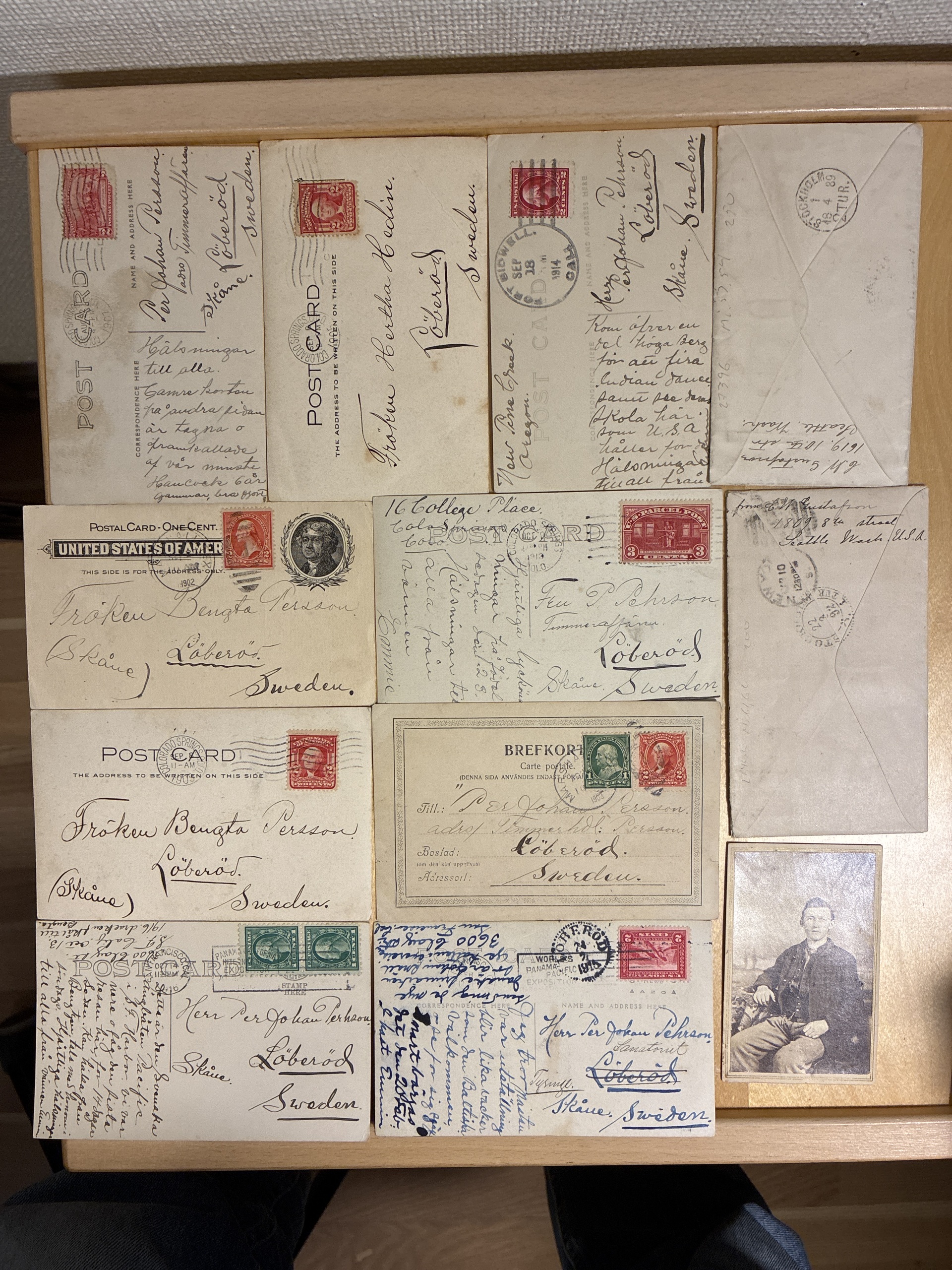 U.S.A. Lot covers ca. 1880–1916 on leaves. Letters and postcards sent to Sweden. Several with real photos from the turn of the century. The letters with content. Please see a selection of scans at www.philea.se. Mostly good quality. (11)