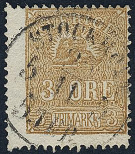 Sweden. Facit 14A used, 3 öre brown, type I. Nice cancellation. Off centered. SEK 5500