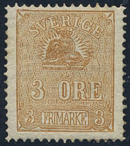 Sweden. Facit 14B ★, 3 öre brown, type II. Climate affected. SEK 2200