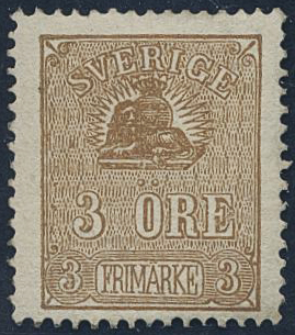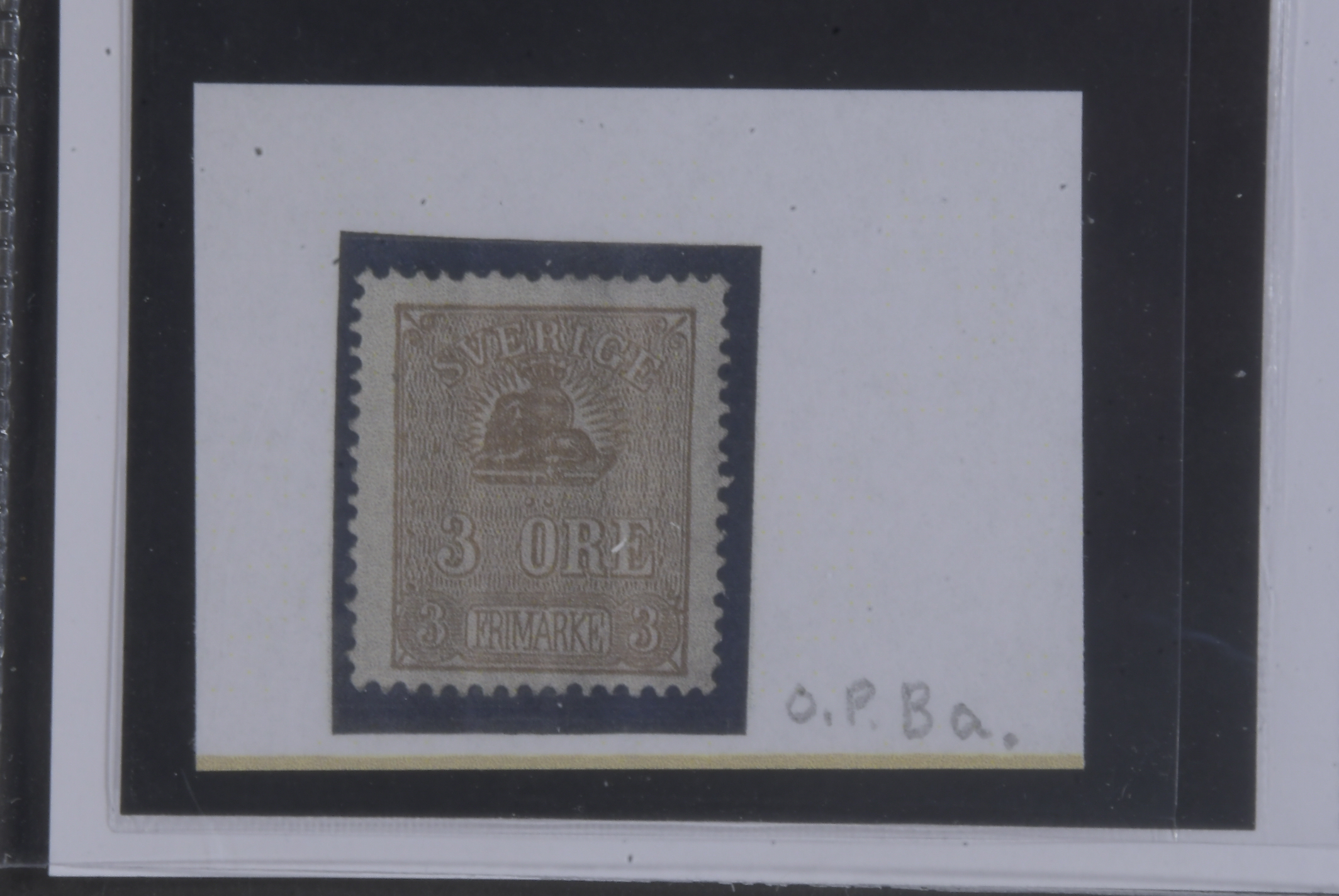 Sweden. Facit 14Ba ★, 3 öre weakly olive-tinged grey-brown, type II. Scarce shade. Opinion (shade) by O.P. SEK 12000