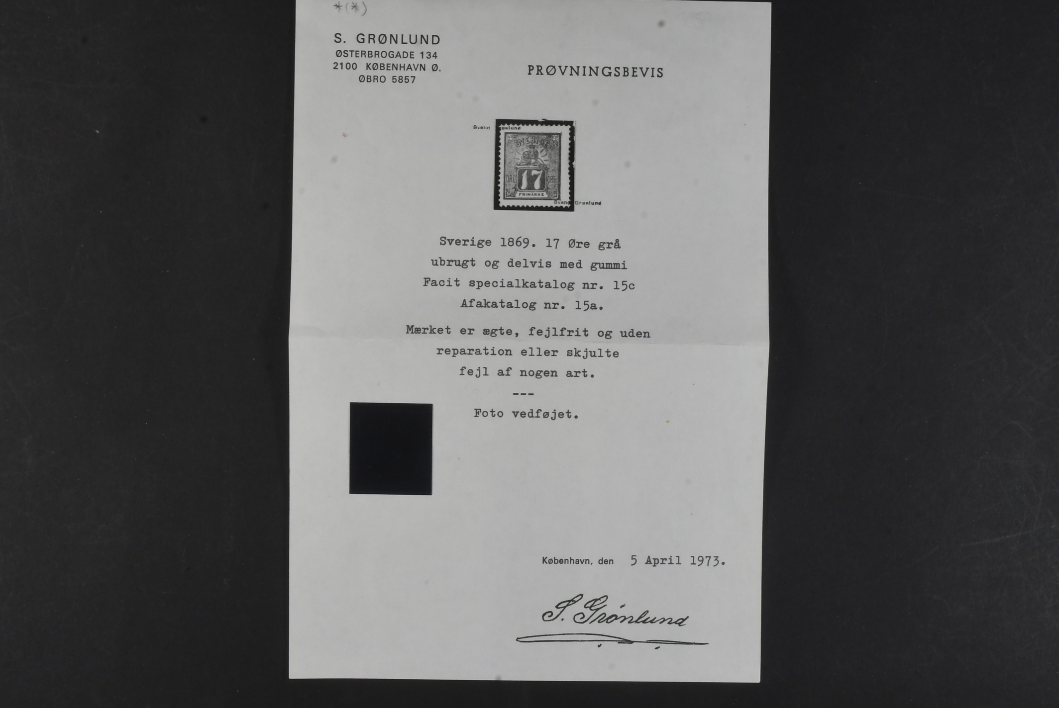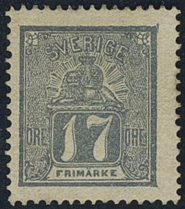 Sweden. Facit 15c ★, 17 öre bluish grey. Beautiful copy partly with gum. Cert. Grønlund. SEK 6500
