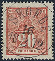Sweden. Facit 16e used, 20 öre red. Superb cancellation SKÖFDE 16.3.1872.