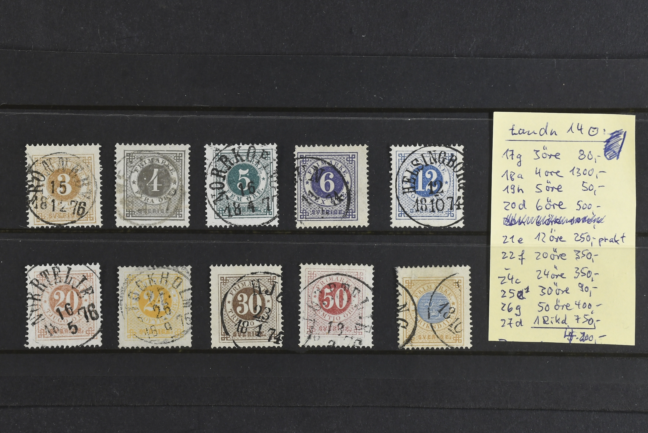 Sweden. Facit 17–27 used, SET (11). Good quality. SEK c. 4000