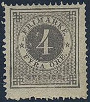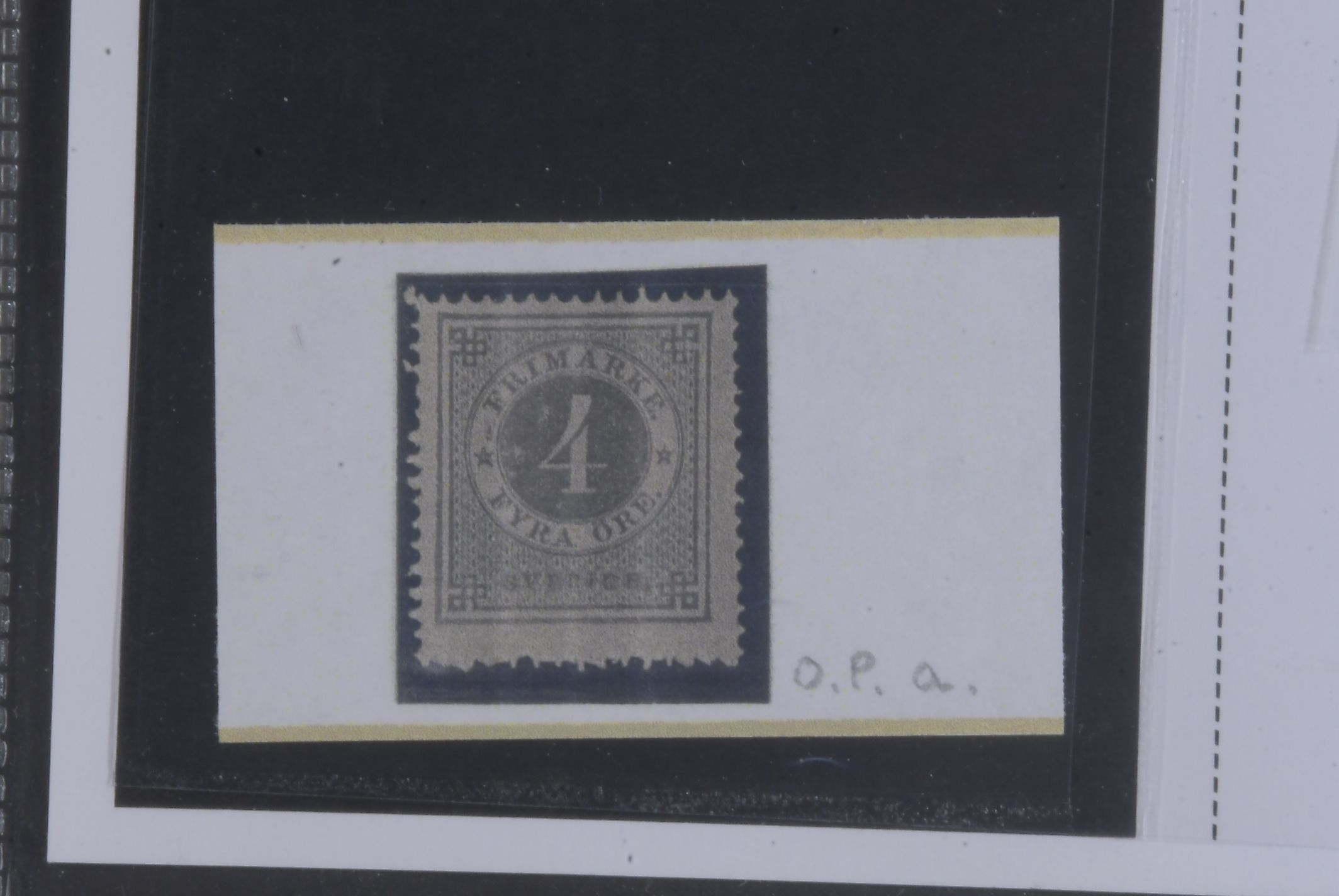 Sweden. Facit 18a ★, 4 öre dark grey. Rough perf. Notation on reverse. Opinion (shade) by O.P. SEK 4500