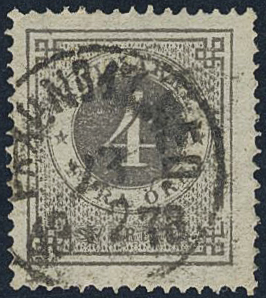 Sweden. Facit 18a used, 4 öre dark grey. Superb cancellation PKXP Nr 1 NED 23.12.1878. Signed by O.P.