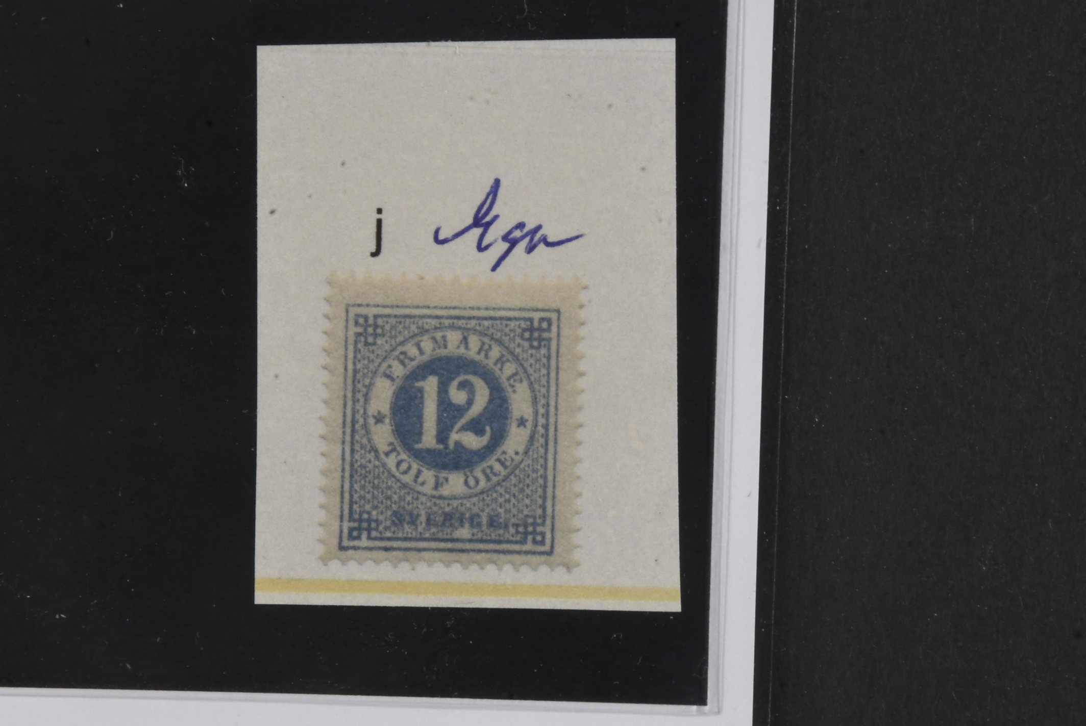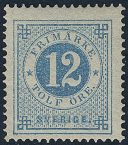 Sweden. Facit 21j ★, 12 öre pale blue. Very fine and fresh. Opinion (shade) by Mats Nilsson. SEK 2500