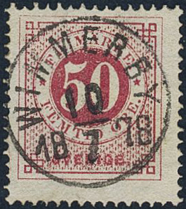 Sweden. Facit 26g used, 50 öre reddish carmine. EXCELLENT cancellation WIMMERBY 10.7.1878.