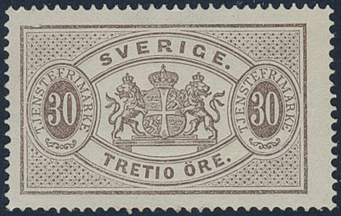 Sweden. Official Facit Tj8b ★, 30 öre brown, perf 14. Opinion (shade) by O.P. dried up gum. SEK 3400