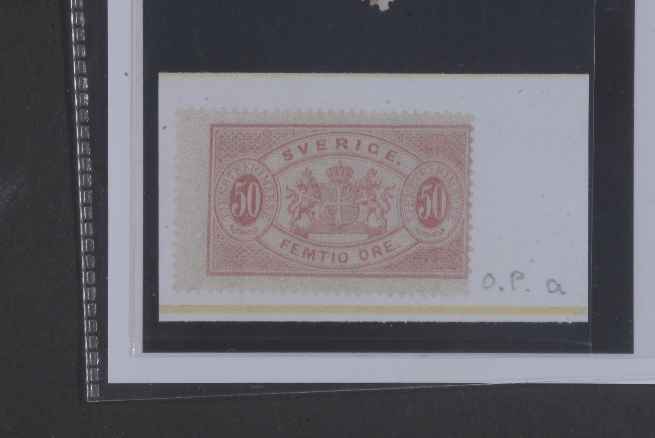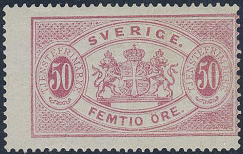 Sweden. Official Facit Tj9a ★, 50 öre violetish carmine, perf 14, blue-greyish paper. Opinion (shade) by O.P. SEK 5000