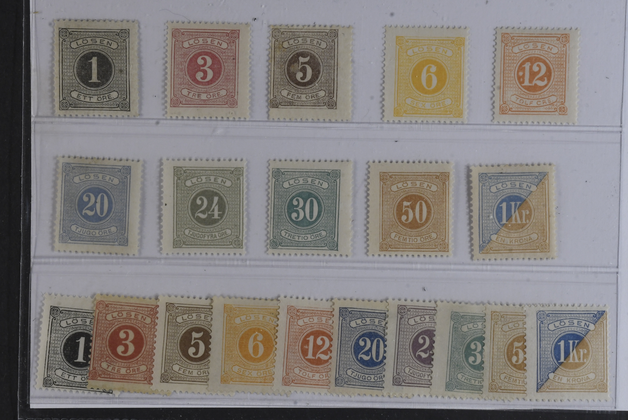 Sweden. Postage due Facit L1–20 ★, 1 öre–1 kr, perf 14 and 13. SEK 11500