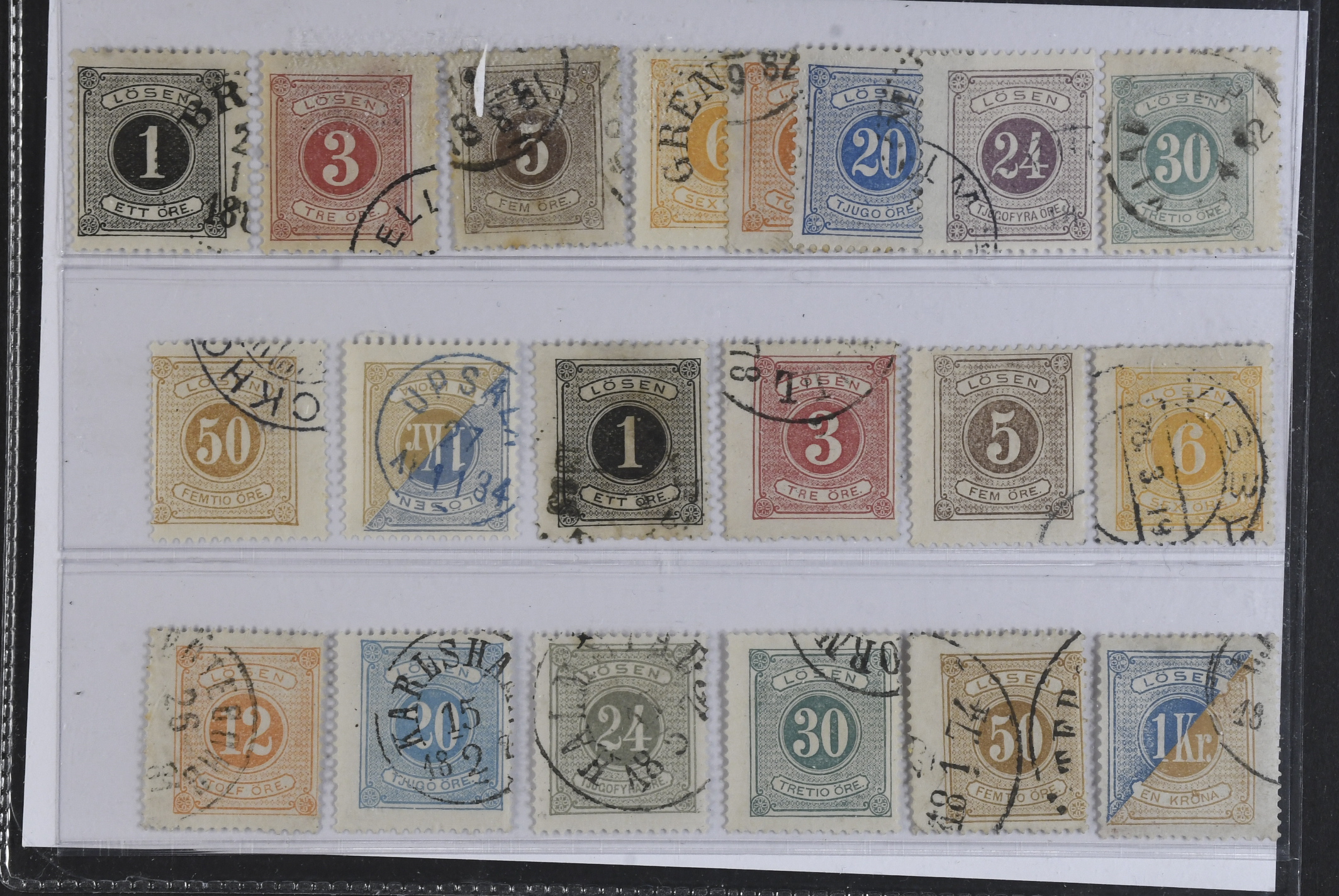 Sweden. Postage due Facit L1–20 used, Both perf 13 and 14 complete (20). SEK 4425