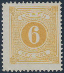 Sweden. Postage due Facit L4b ★★, 6 öre yellow, perf 14. Opinion (shade) by O.P. SEK 3500