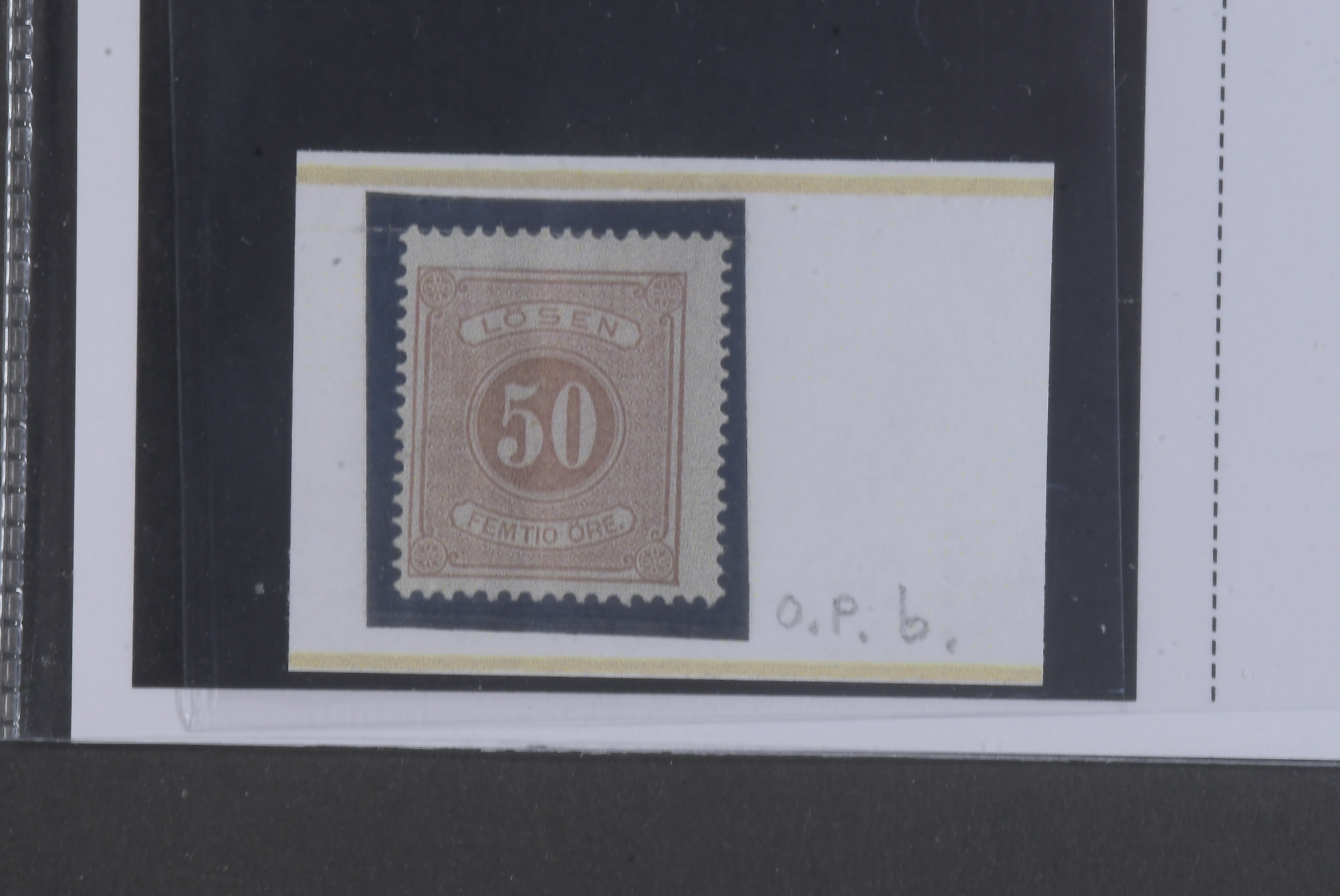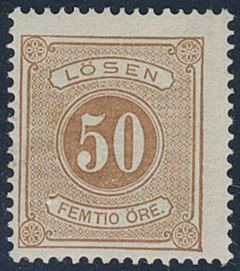 Sweden. Postage due Facit L9b ★, 50 öre orange-brown, perf 14. Tiny thin spot. Opinion (shade) by O.P. SEK 2800