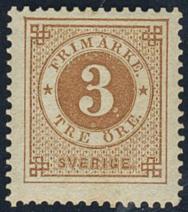 Sweden. Facit 28 ★★, 3 öre brown. Climate affected. SEK 3600