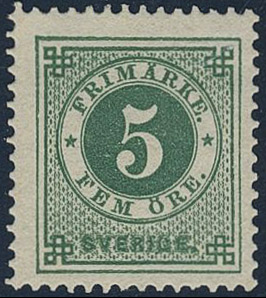Sweden. Facit 30c ★, 5 öre green, rich smooth print. Opinion (shade) by O.P. SEK 2000