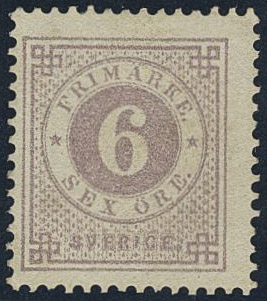 Sweden. Facit 31e ★, 6 öre greyish lilac.