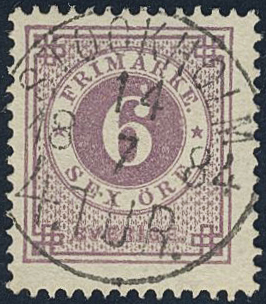 Sweden. Facit 31i used, 6 öre red-lilac on soft paper. EXCELLENT cancellation STOCKHOLM 4.TUR 14.7.1884.