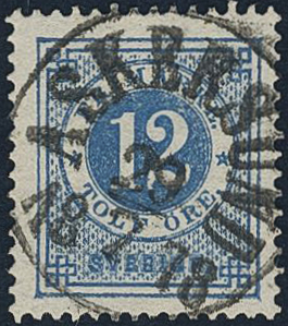Sweden. Facit 32b used, 12 öre deep blue. Superb cancellation ASKERSUND 29.7.1878.