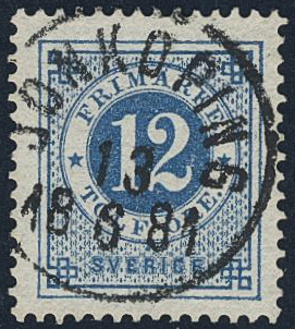 Sweden. Facit 32e used, 12 öre dull greyish blue. Superb cancellation JÖNKÖPING 13.6.1881.