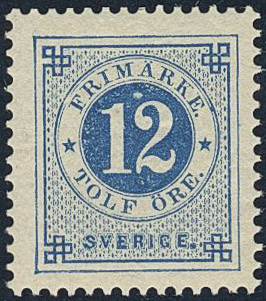 Sweden. Facit 32g ★★, 12 öre dark blue–light blue on soft paper. Superb.