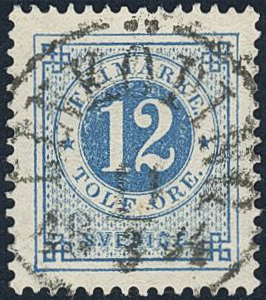 Sweden. Facit 32g used, 12 öre dark blue - light blue on soft paper. EXCELLENT cancellation LINKÖPING 11.3.1884.