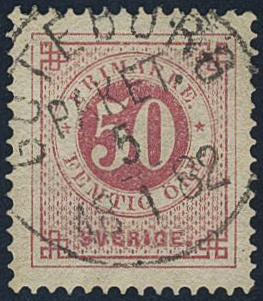 Sweden. Facit 36d used, 50 öre dull violetish carmine. Superb cancellation GÖTEBORG PAKET 5.1.1882.