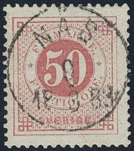 Sweden. Facit 36e used, 50 öre rose. EXCELLENT cancellation NÅS 9.3.1884.