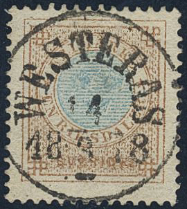 Sweden. Facit 37 used, 1 Riksdaler brown/blue. EXCELLENT cancellation WESTERÅS 14.3.1878.