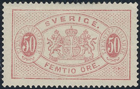 Sweden. Official Facit Tj22Ac ★, 50 öre rose, perf 13, type I. SEK 2500