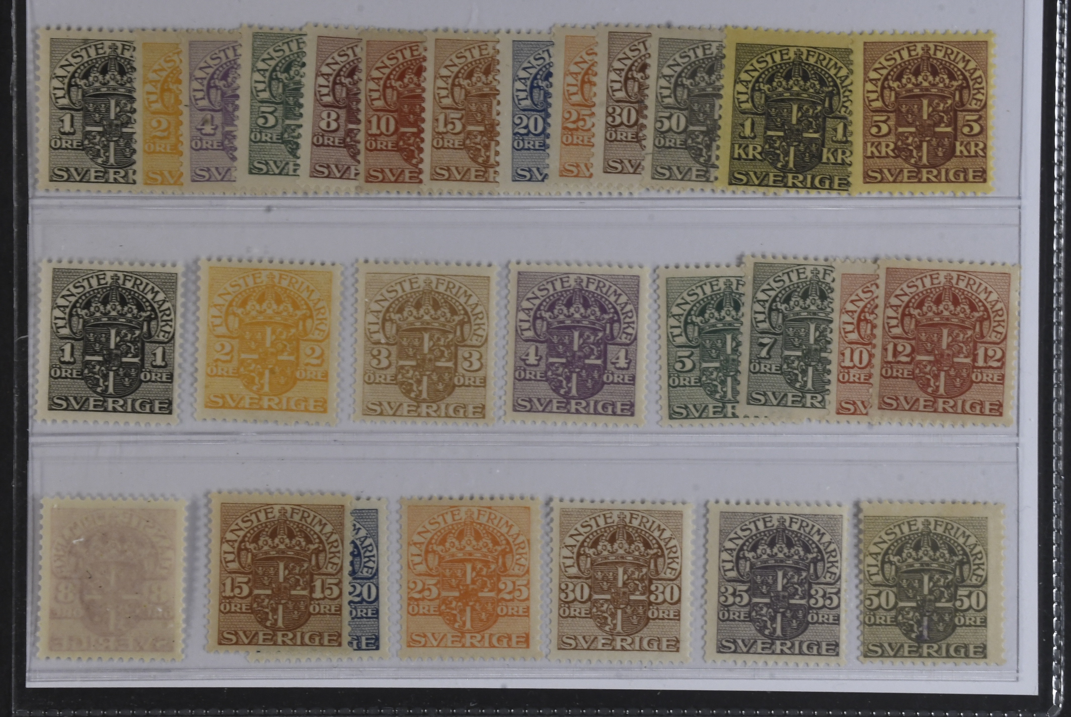 Sweden. Official Facit Tj27–54 ★★, Small Size with wm Crown and without. SEK 1900