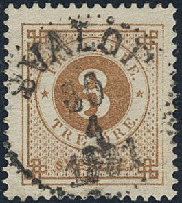 Sweden. Facit 41a used, 3 öre yellowish brown. Superb cancellation SVALÖF 30.4.1891.