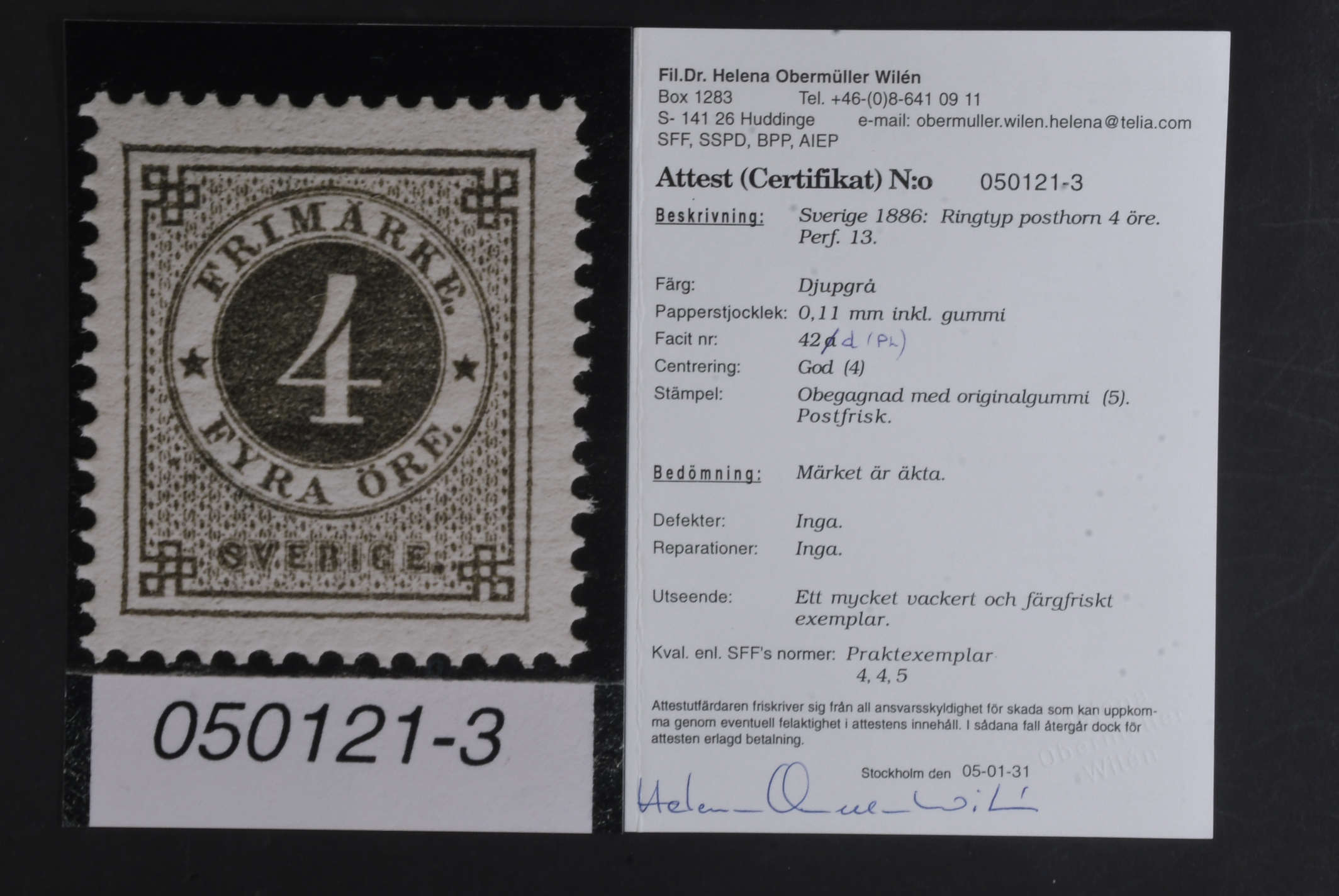 Sweden. Facit 42d ★★, 4 öre grey-black. Superb. Cerificate HOW 4,4,5 (2005). Shade corrected by Lorentzon.