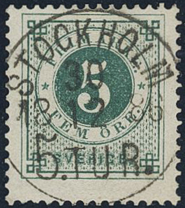 Sweden. Facit 43a used, 5 öre dull blue-green. EXCELLENT cancellation STOCKHOLM 5.TUR 30.12.1886.