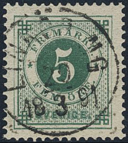 Sweden. Facit 43e used, 5 öre emerald green. Superb cancellation LINKÖPING 20.3.1891.