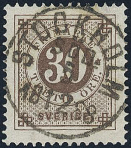 Sweden. Facit 47c used, 30 öre black-brown. Superb cancellation STOCKHOLM SÖD 5.12.1888.