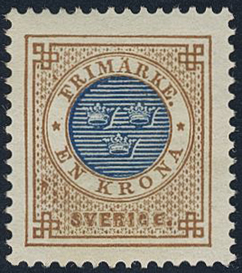 Sweden. Facit 49c ★, 1 Krona orange-brown/dark blue on yellowish paper.