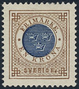 Sweden. Facit 49d ★, 1 Krona brown/dark blue. Superb–EXCELLENT.