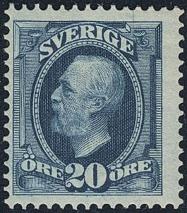Sweden. Facit 56vm1 ★, 1891 Oscar II 20 öre blue, inverted wmk variety. Fair centering. SEK 2000