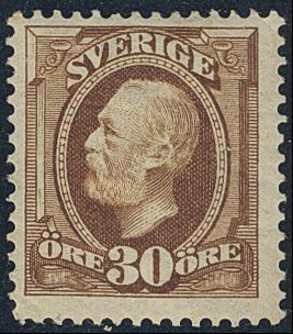 Sweden. Facit 58 ★★, 1891 Oscar II 30 öre brown. SEK 1600
